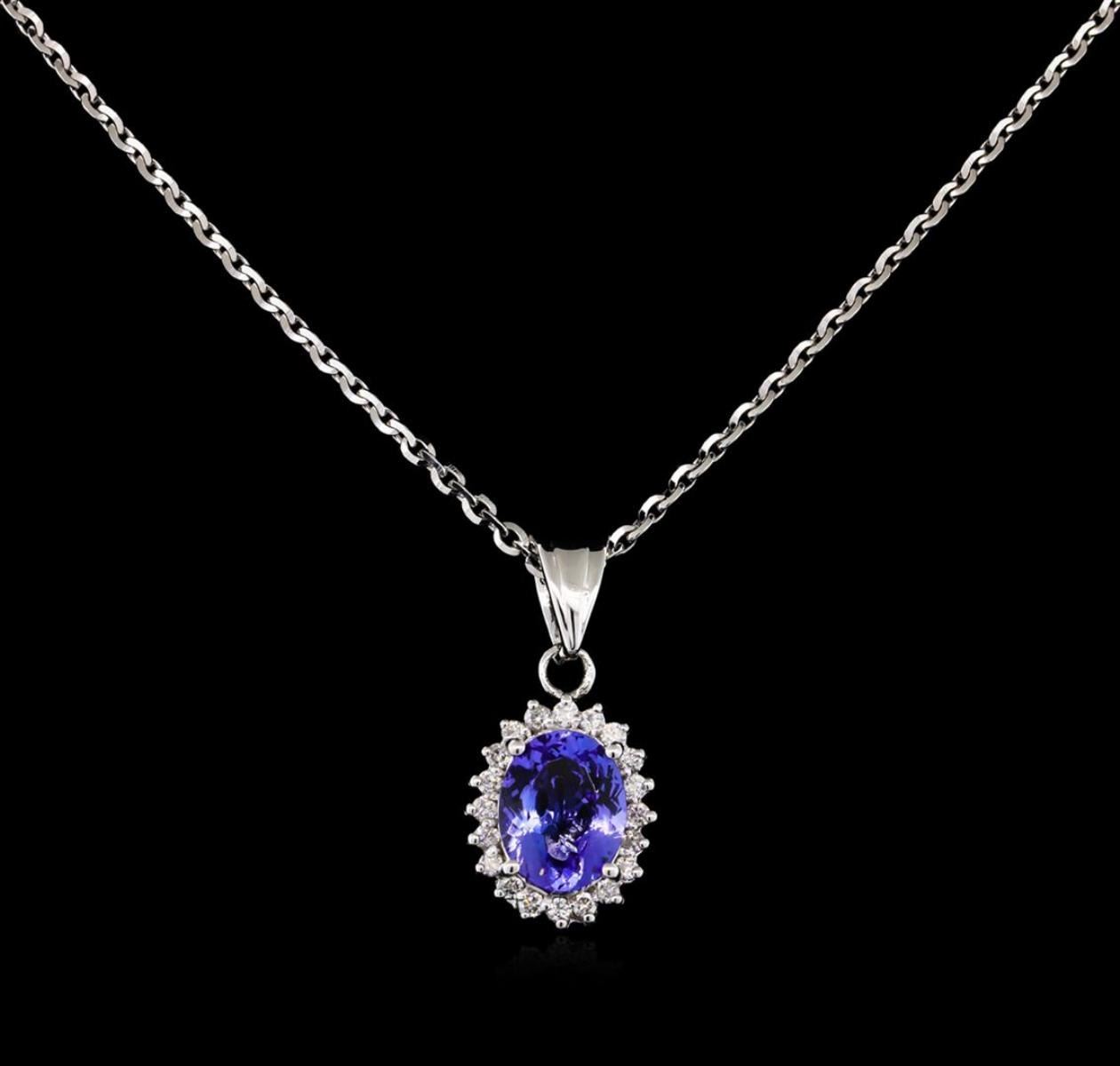 One pendant featuring: 14KT white gold weighing 2.60 grams containing one tanzanite with a total weight of 1.98ct and side diamonds with a total weight of 0.27ct.