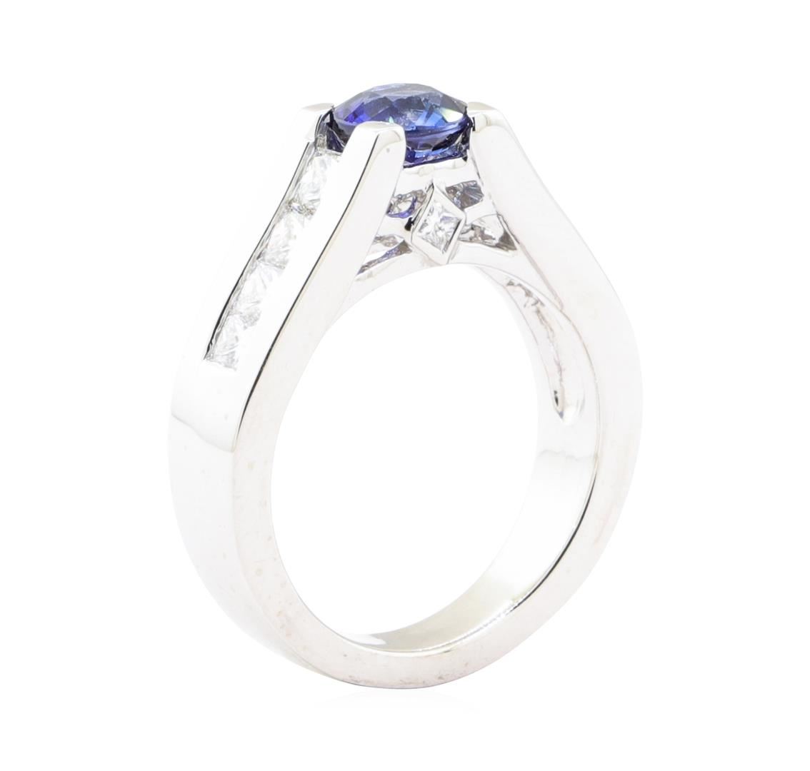 One electronically tested 14KT white gold lady's cast fashion ring with a straight line cathedral shank with a bright polish finish. The featured lady's ring has a shank measuring 3.80 millimeters wide. Identified with markings of '14K'. Condition is new,