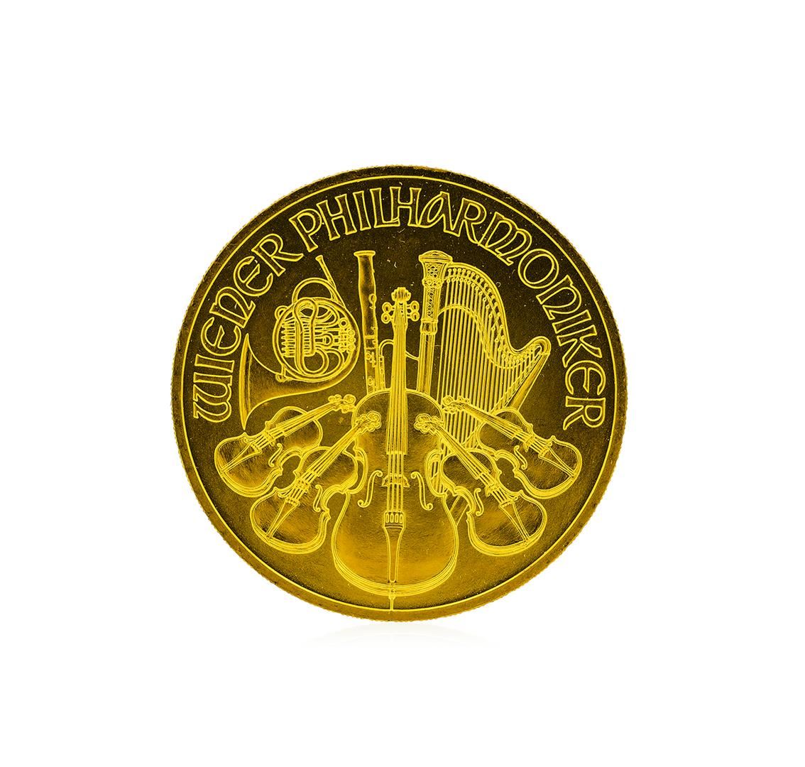 One 1 oz. (31 grams) 100 Euro 2010 Wiener Philharmoniker 999.9 Gold Coin including: 24K Yellow Gold, diameter: 37mm x 2.11mm, and with total weight of 31 grams. The coin is in perfect uncirculated condition.