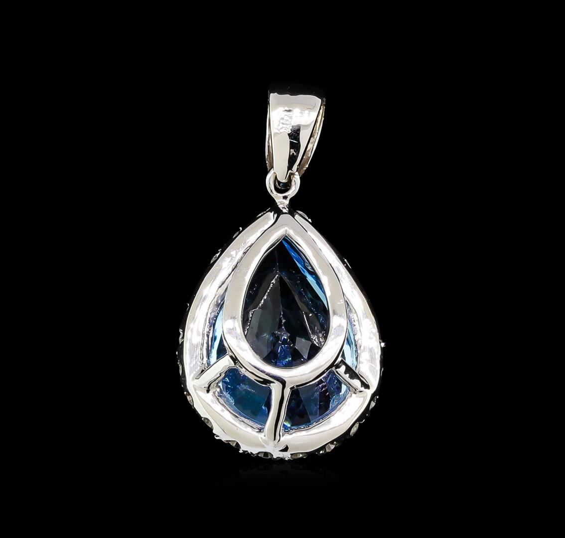 One pendant featuring: 14KT white gold weighing 4.31 grams containing one blue topaz with a total weight of 10.00ct and diamonds with a total weight of 0.79ct.