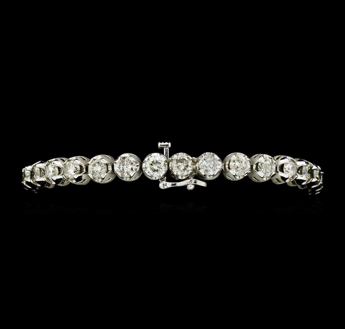 One electronically tested 14KT white gold lady's combination cast & assembled tennis bracelet with a tongue clasp with foldover safety with a bright polish finish. The featured lady's bracelet measures approximately 7.25 inches in length. Identified with markings of '14K'. Condition is new, good workmanship. Containing: Thirty-One prong set round brilliant cut diamonds, measuring 4.50 - 4.30 x 2.73mm (depth est.) approximate total weight of 31 Stones = 10.00ct. Graded in the setting. Color J - L Clarity I-1 to I-2 Cut Good. Total Weight of Diamonds 10.00ct.. Total Weight of Bracelet 20.30gm GAS Appraised at $17485.00. GAS Appraised at $17,485.00.