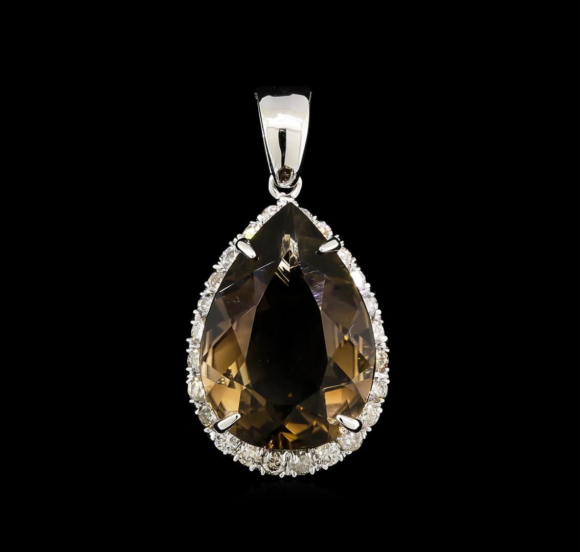 One pendant featuring: 14KT white gold weighing 4.54 grams containing one smoky topaz with a total weight of 10.00ct and diamonds with a total weight of 0.87ct.
