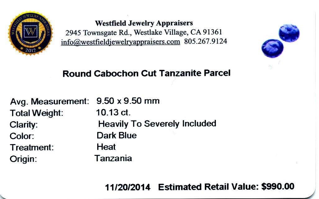 10.13ctw. Round Cabochon Cut Tanzanites. Westfield Appraised at $990.00.
