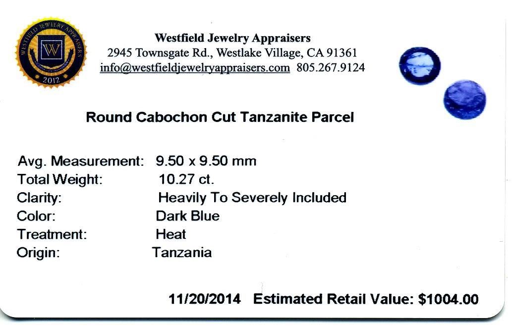 10.27ctw. Round Cabochon Cut Tanzanites. Westfield Appraised at $1,004.00.