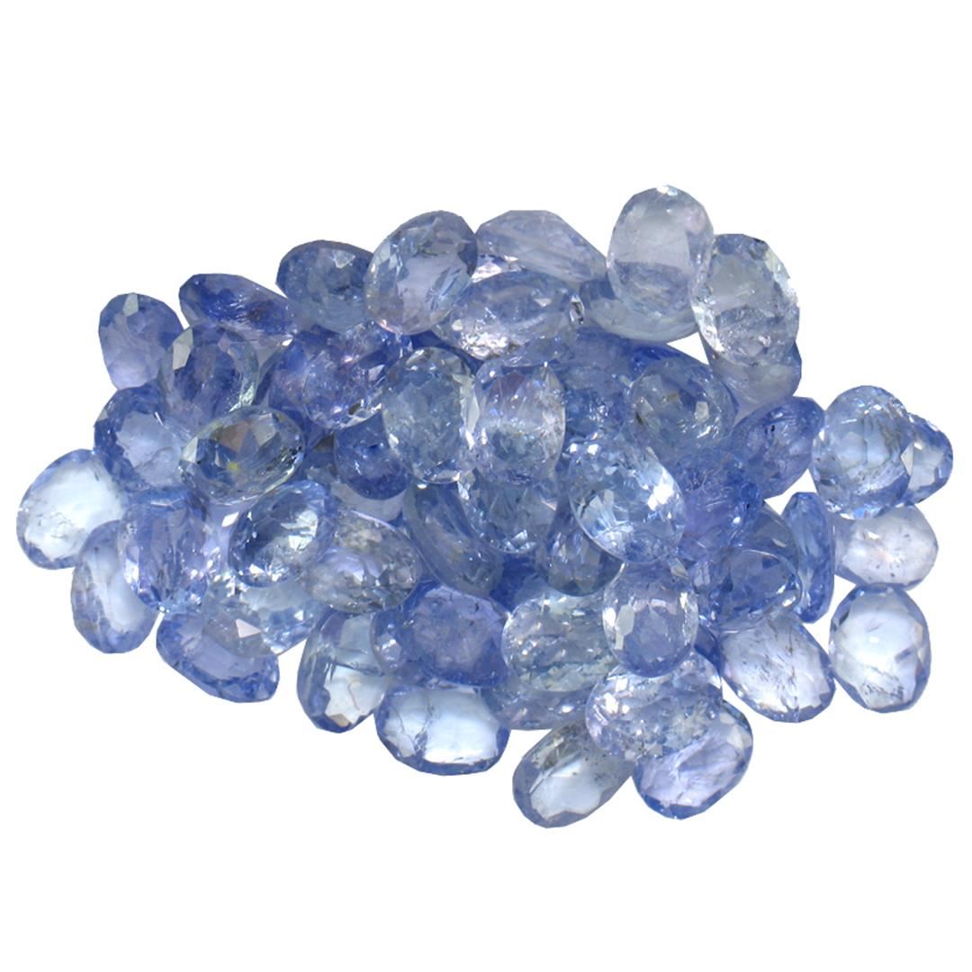 Fifty oval mixed cut natural tanzanites, measuring 4.00 x 3.00 x 1.95mm, exact total weight 10.55ct., clarity is slightly included, type I, medium, very slightly grayish, violetish blue color, (GIA vB 5/3), cut is good. Measurements & the color grade are an average for the group, Color grade is an average for the group, Transmitting light with no distortion, transparent, Naturally occurring internal & external characteristics are present, Indications of multiple laboratory enhancements, including high temperature heat treatment. Westfield Appraised at $1,015.00.