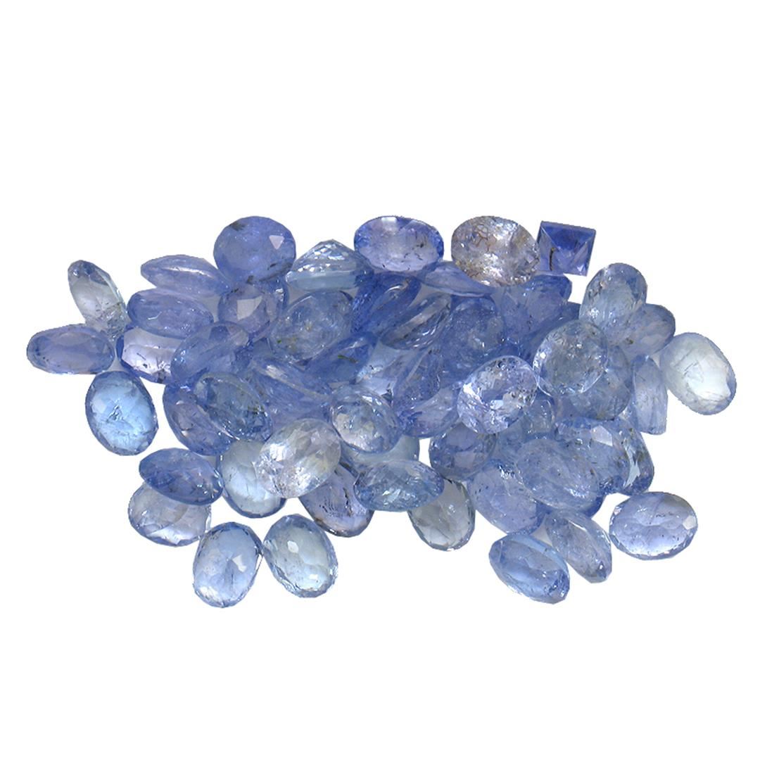 Forty oval mixed cut natural tanzanites exact total weight 10.89ct., clarity is slightly included, type I, medium, very slightly grayish, violetish blue color, (GIA vB 5/3), cut is good. Measurements & the color grade are an average for the group, Color grade is an average for the group, Transmitting light with no distortion, transparent, Indications of laboratory high temperature heat treatment. Westfield Appraised at $1,050.00.