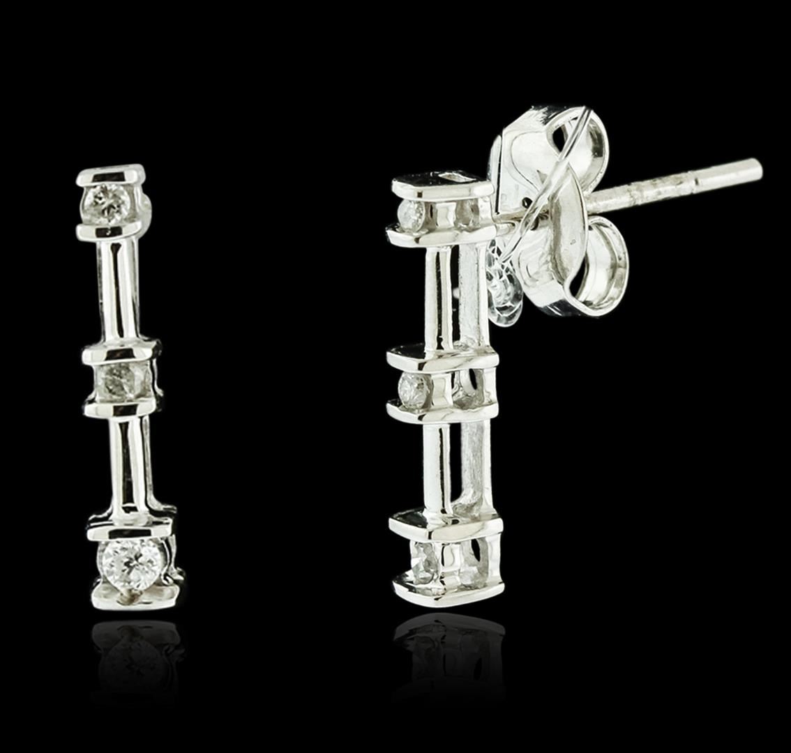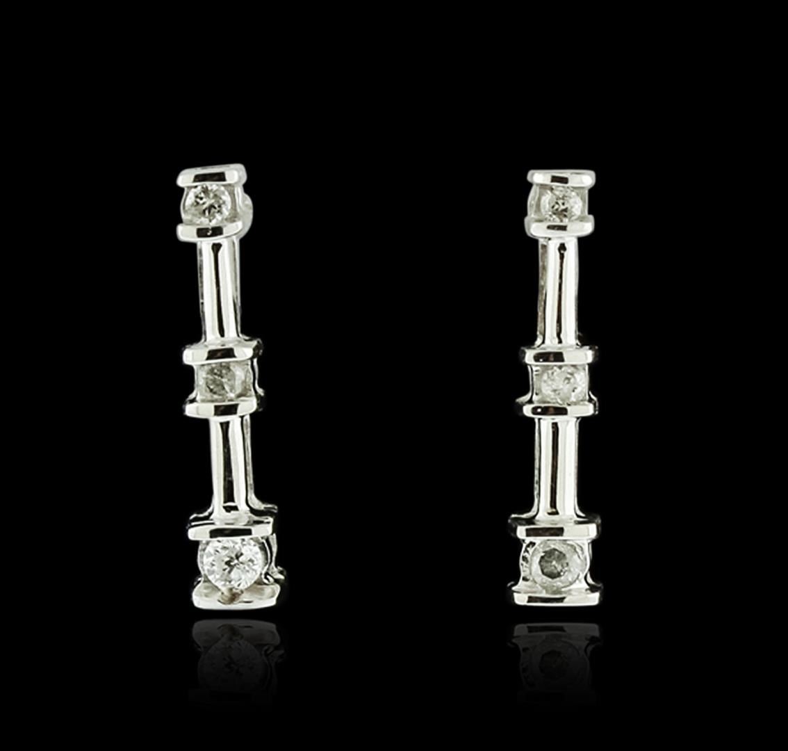 One pair of earrings featuring: 10KT white gold weighing 1.30 grams containing diamonds with a total weight of 0.10ct.
