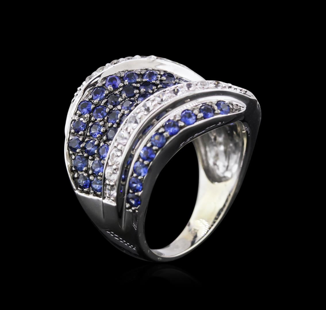 One ring featuring: 10KT white gold weighing 6.55 grams containing 66 blue sapphires with a total weight of 2.12ct and 22 white sapphires with a total weight of 0.59ct.