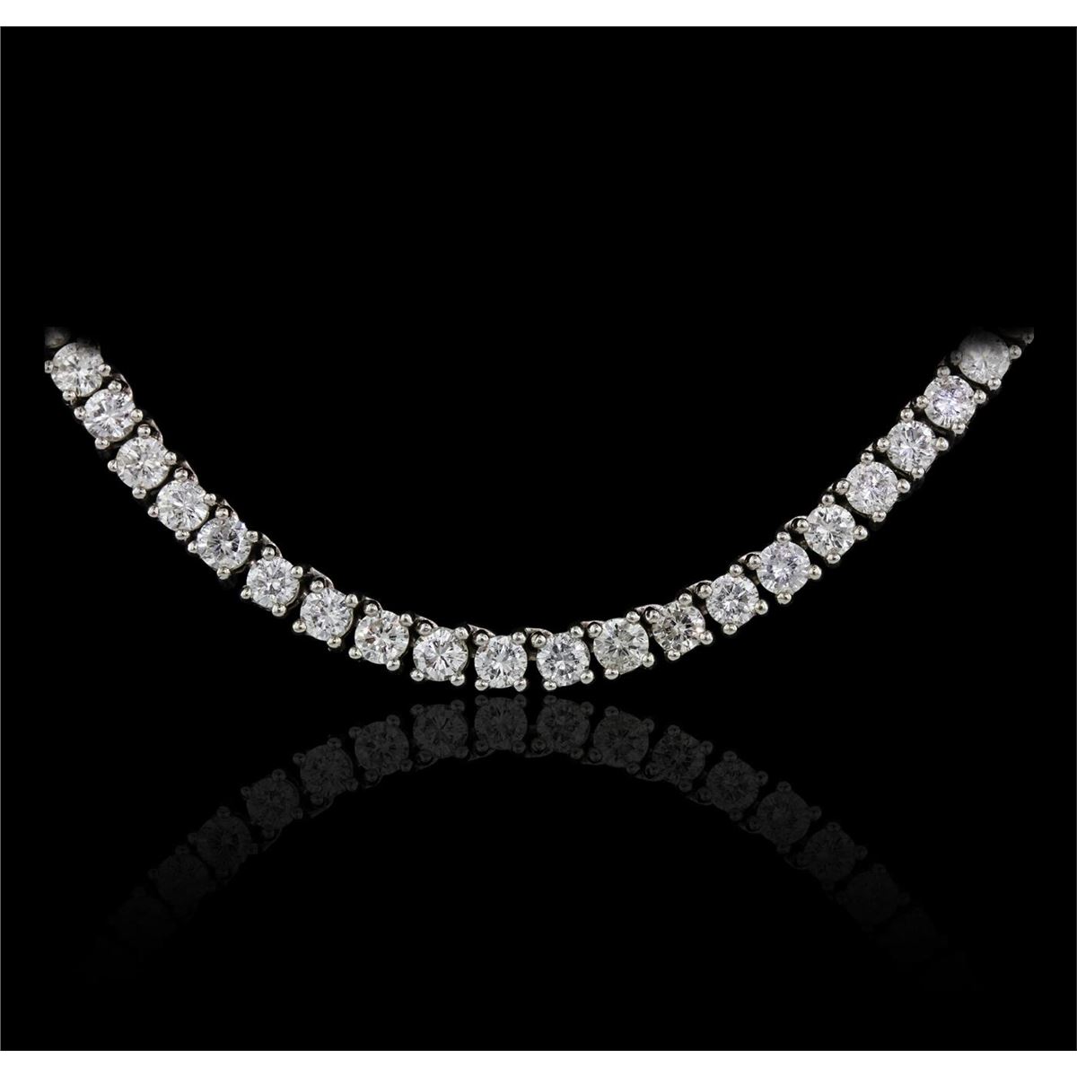One diamond necklace set in white gold stamped 10K containing a total of 173 round brilliant cut natural diamonds with a total weight of 20.85ct. Clarity: SI2-I1. Color: F-G/I-J. The total weight of the necklace is 50.00 grams. UGS Appraised at $25,000.00.