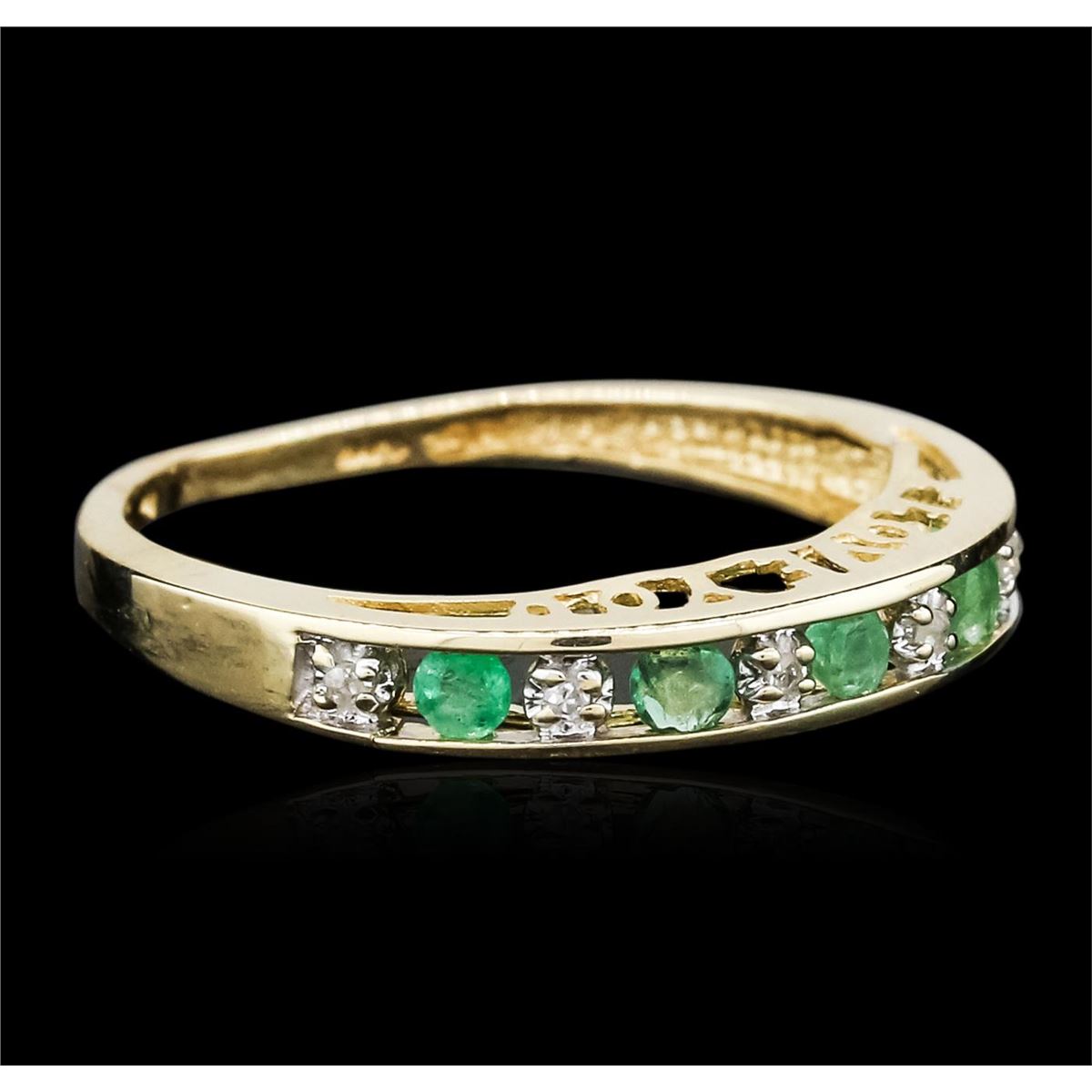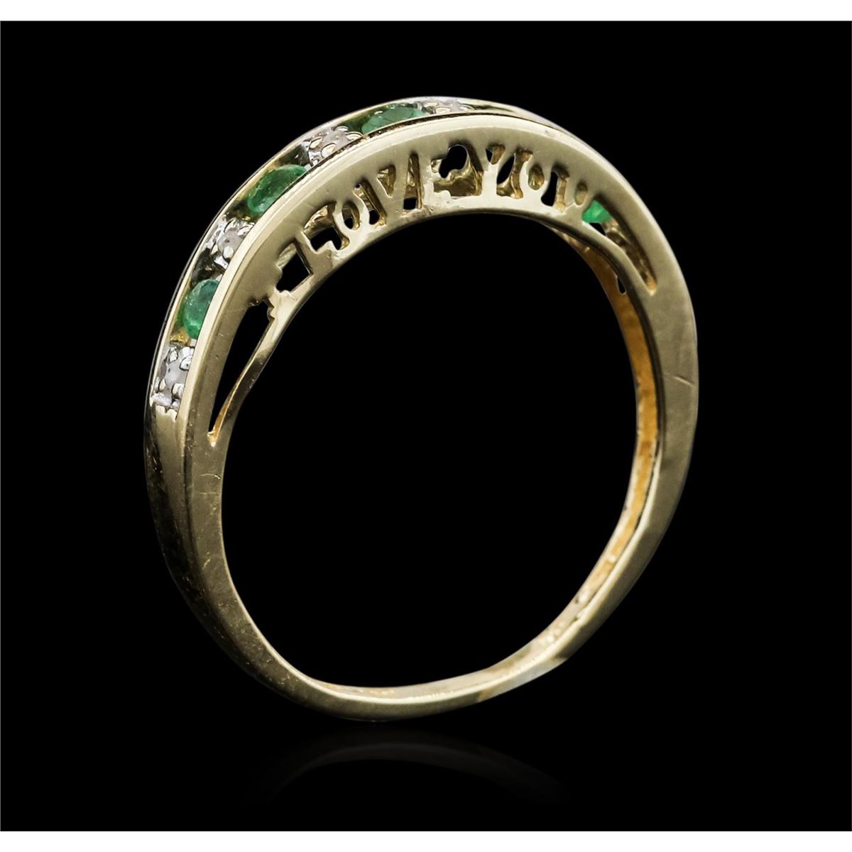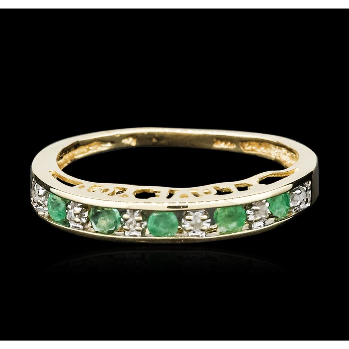 One ring featuring: 10KT yellow gold weighing 1.60 grams containing emeralds with a total weight of 0.30cts and round cut diamonds with a total weight of 0.05cts.