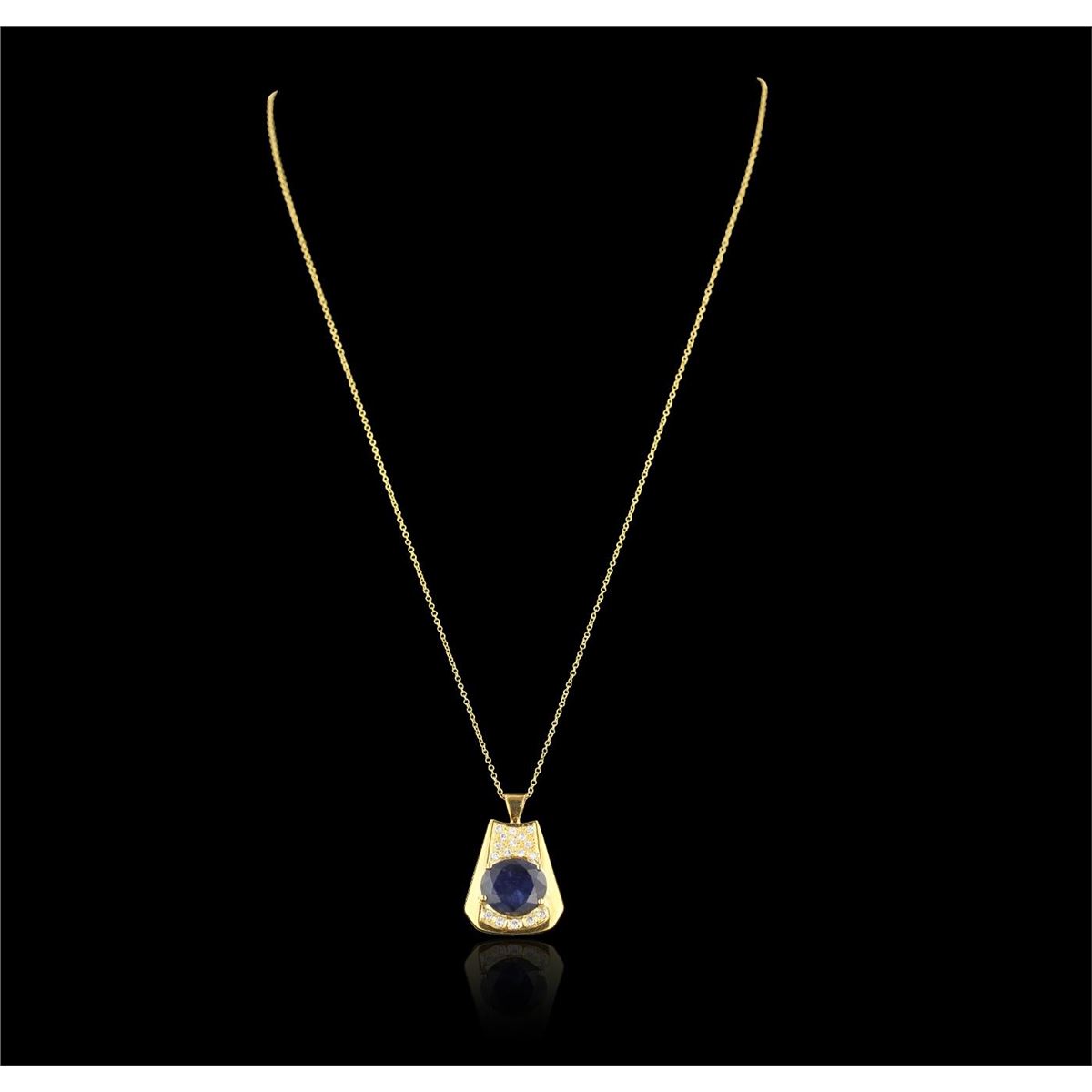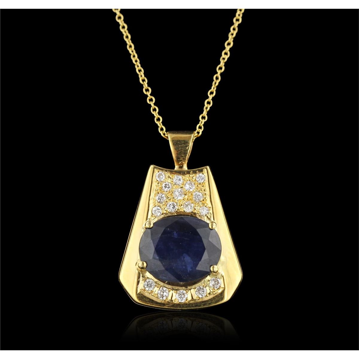 One pendant with chain featuring: 7.40 grams of 10KT yellow gold, (1) 3.36ct sapphire and 0.25cts of diamonds.