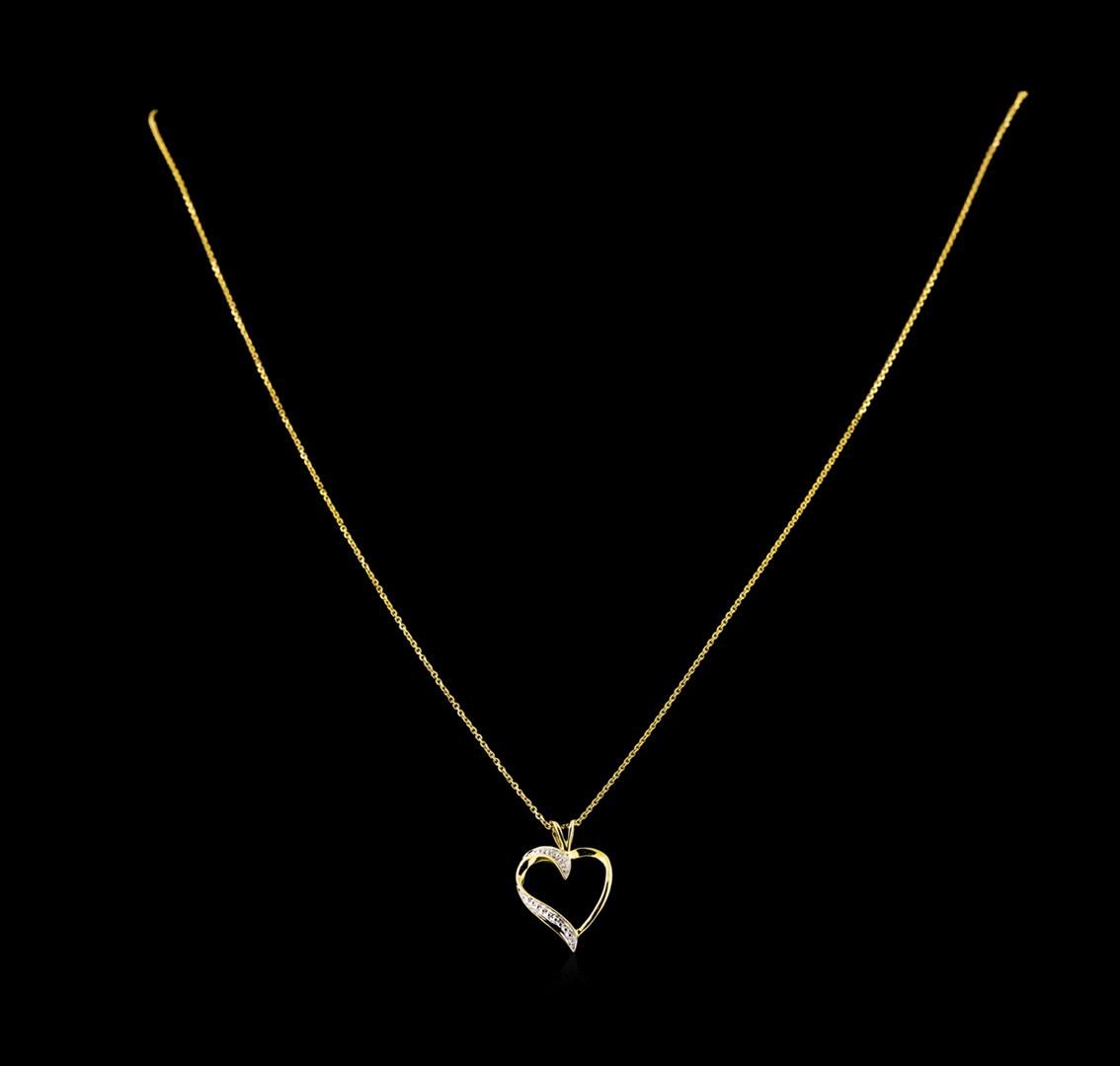 One heart pendant with chain featuring: 10KT yellow gold weighing 1.50 grams containing one diamond with a total weight of 0.01ct. The chain measures 18" in length.