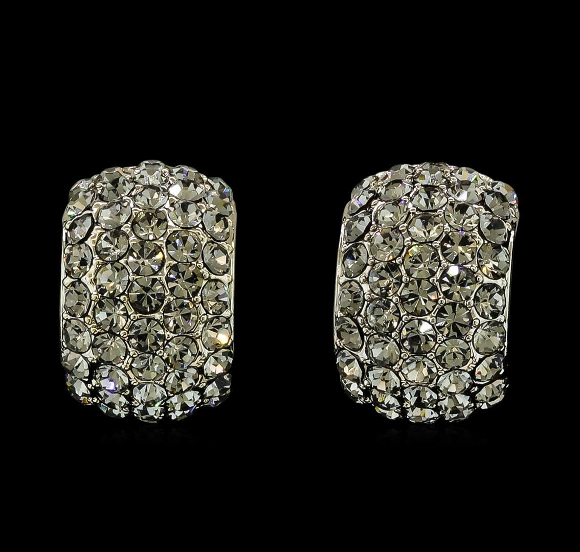 High end designer jewelry. 10x15mm Crystal Pave Hoop Earrings - Metal. Chocolate Metal. Choc/ Smoky. French Clip.