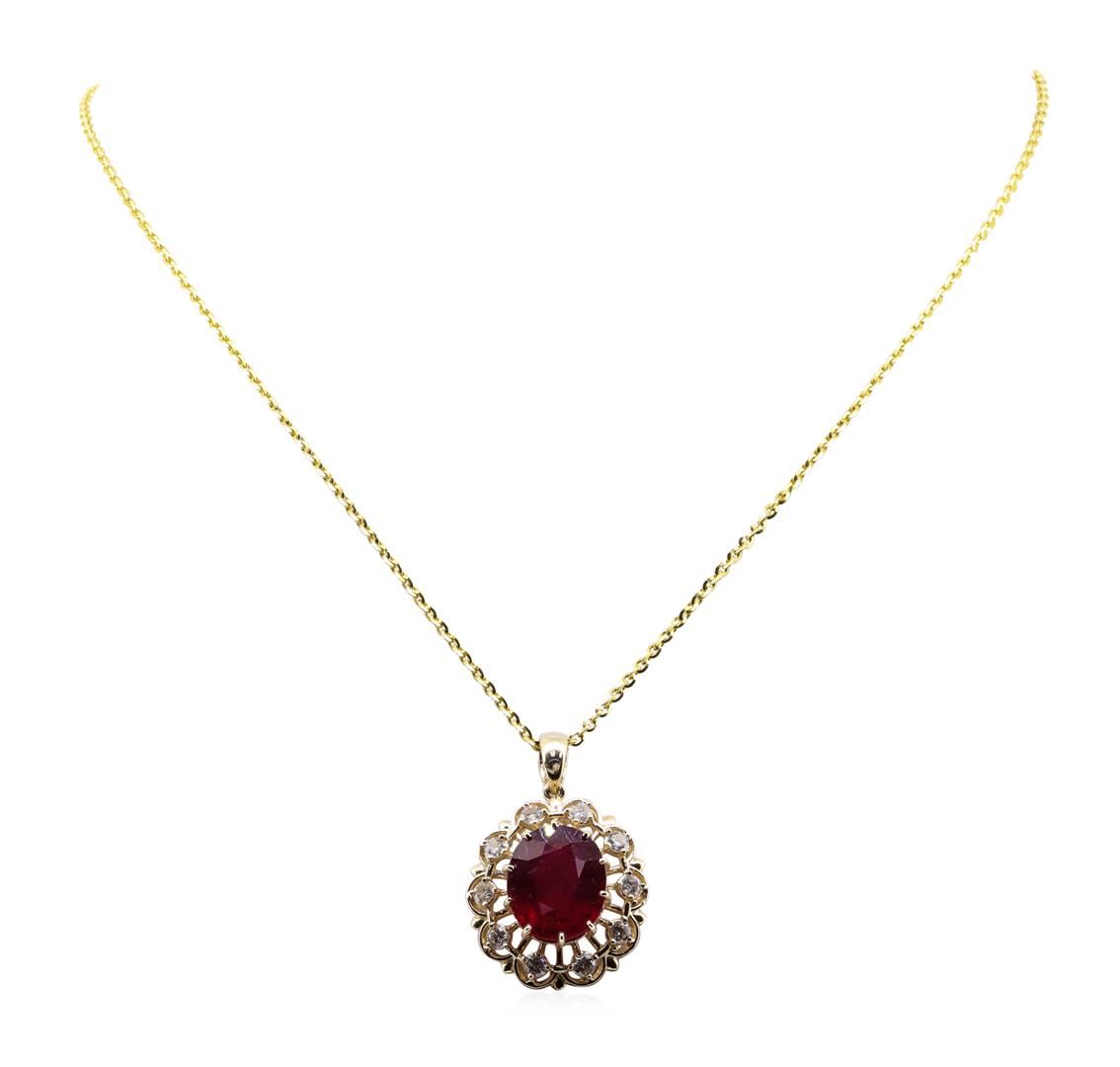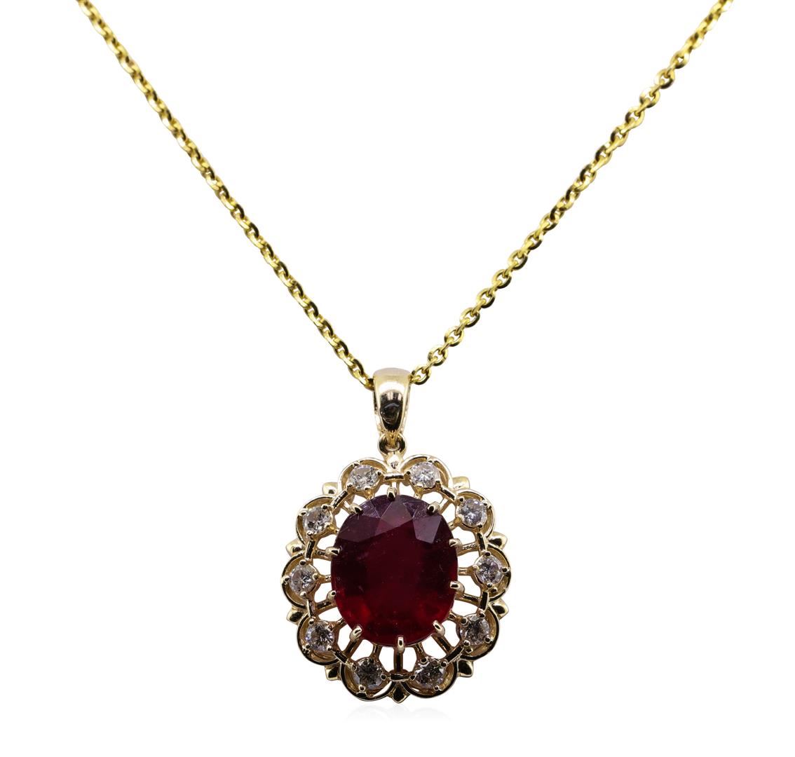 One 11.34 Ruby and Diamond Pendant With Chain - 14KT Yellow Gold. IAS certified. See Appraisal for more details.