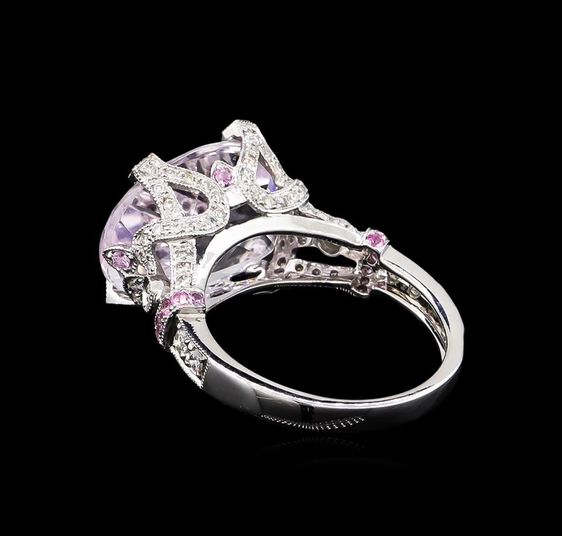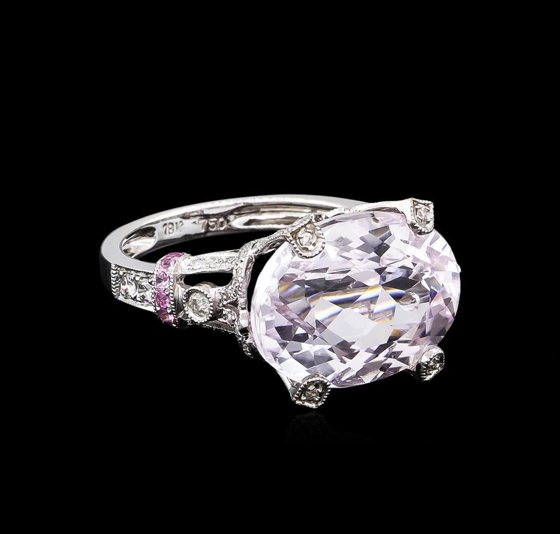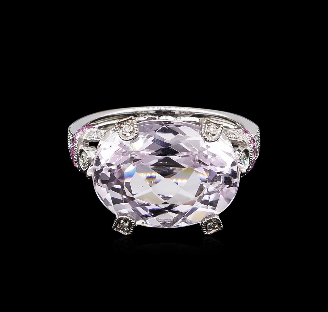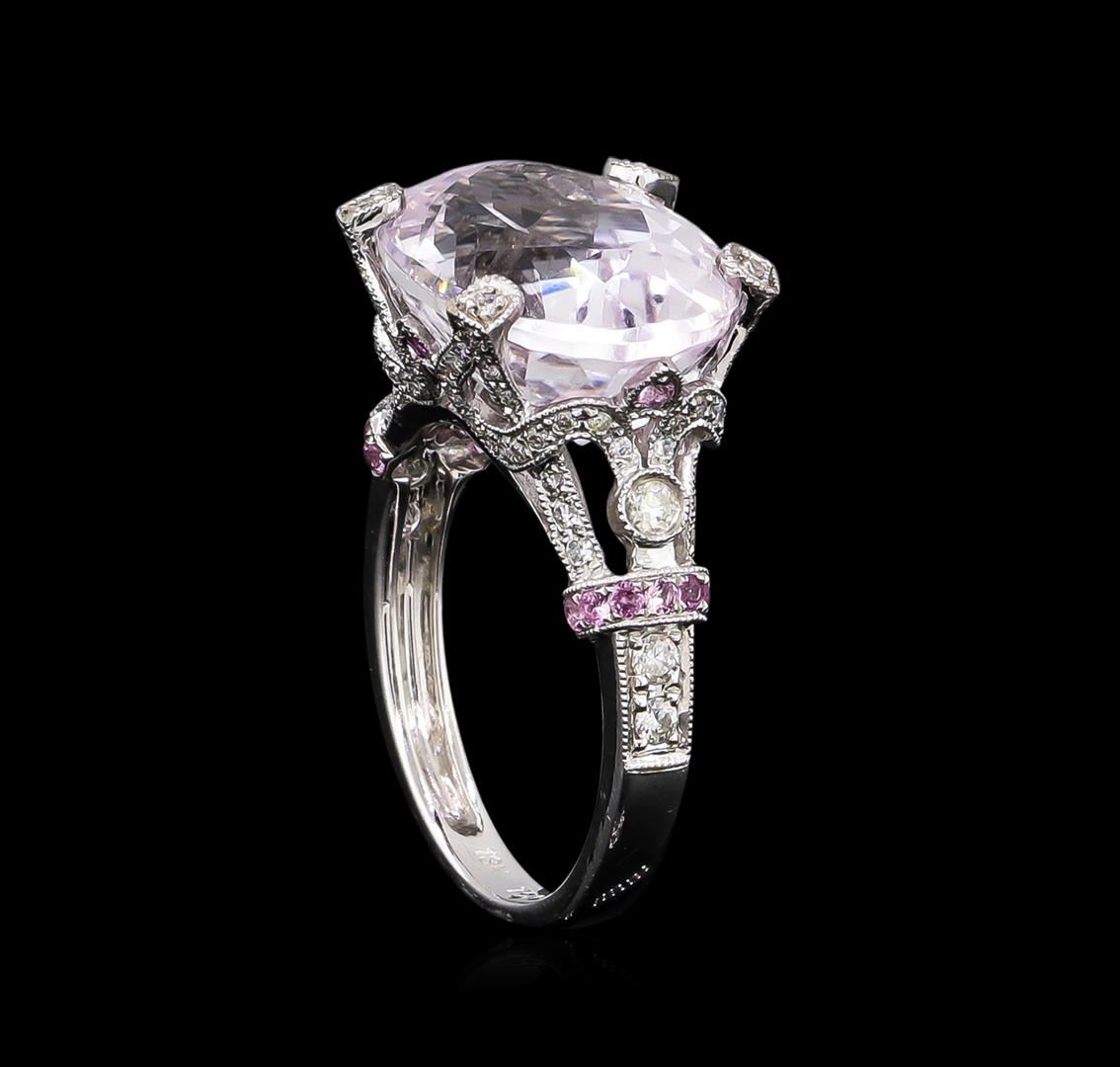 One ring featuring: 18KT white gold weighing 4.32 grams containing one kunzite with a total weight of 11.71 and pink sapphires with a total weight of 0.20ct and diamonds with a total weight of 0.44ct.