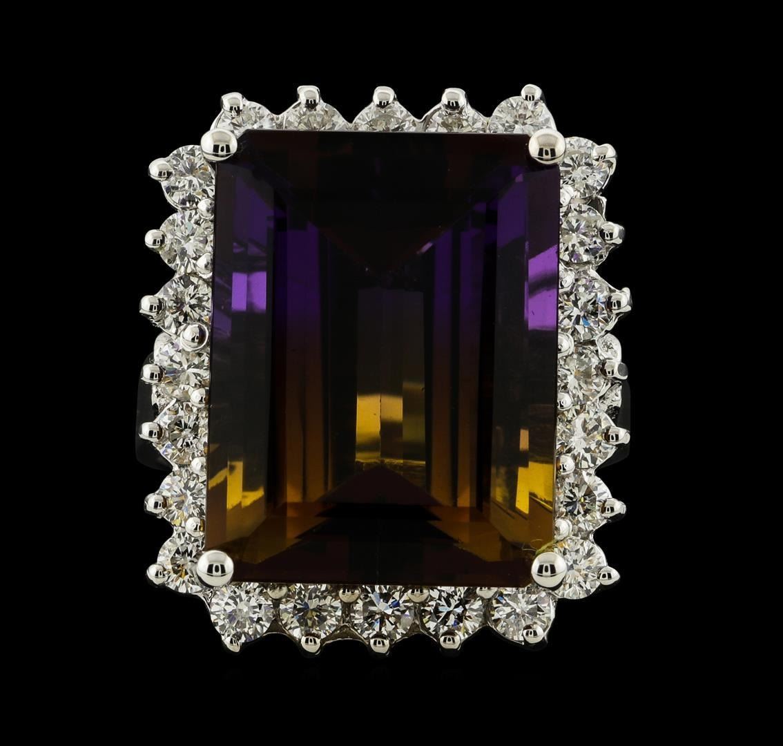 11.78 ctw Ametrine Quartz and Diamond Ring - 14KT White Gold