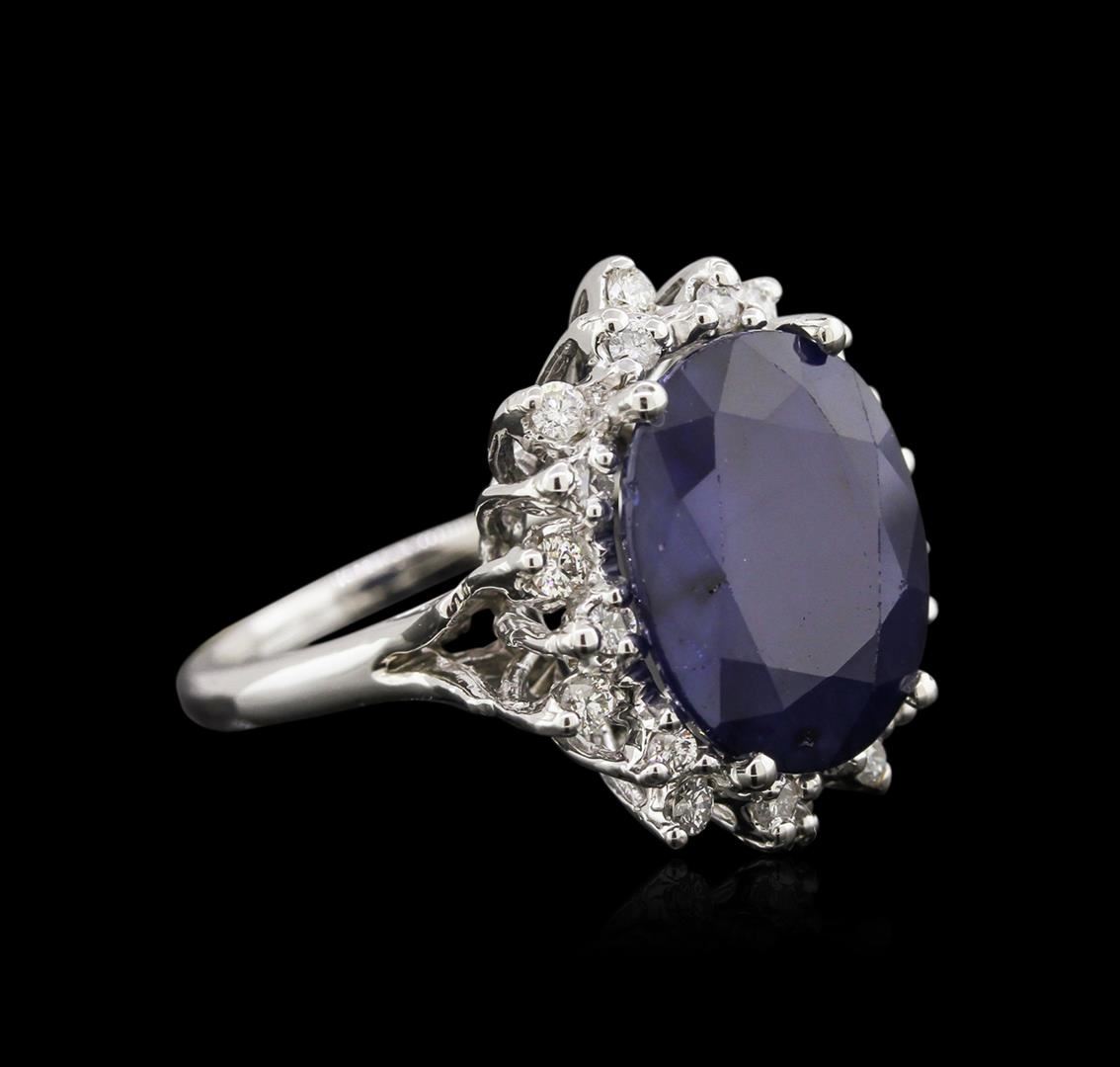 One ring featuring: 14KT white gold weighing 6.37 grams containing one blue sapphire center stone with a total weight of 11.82ct and 20 diamonds with a total weight of 0.52ct.