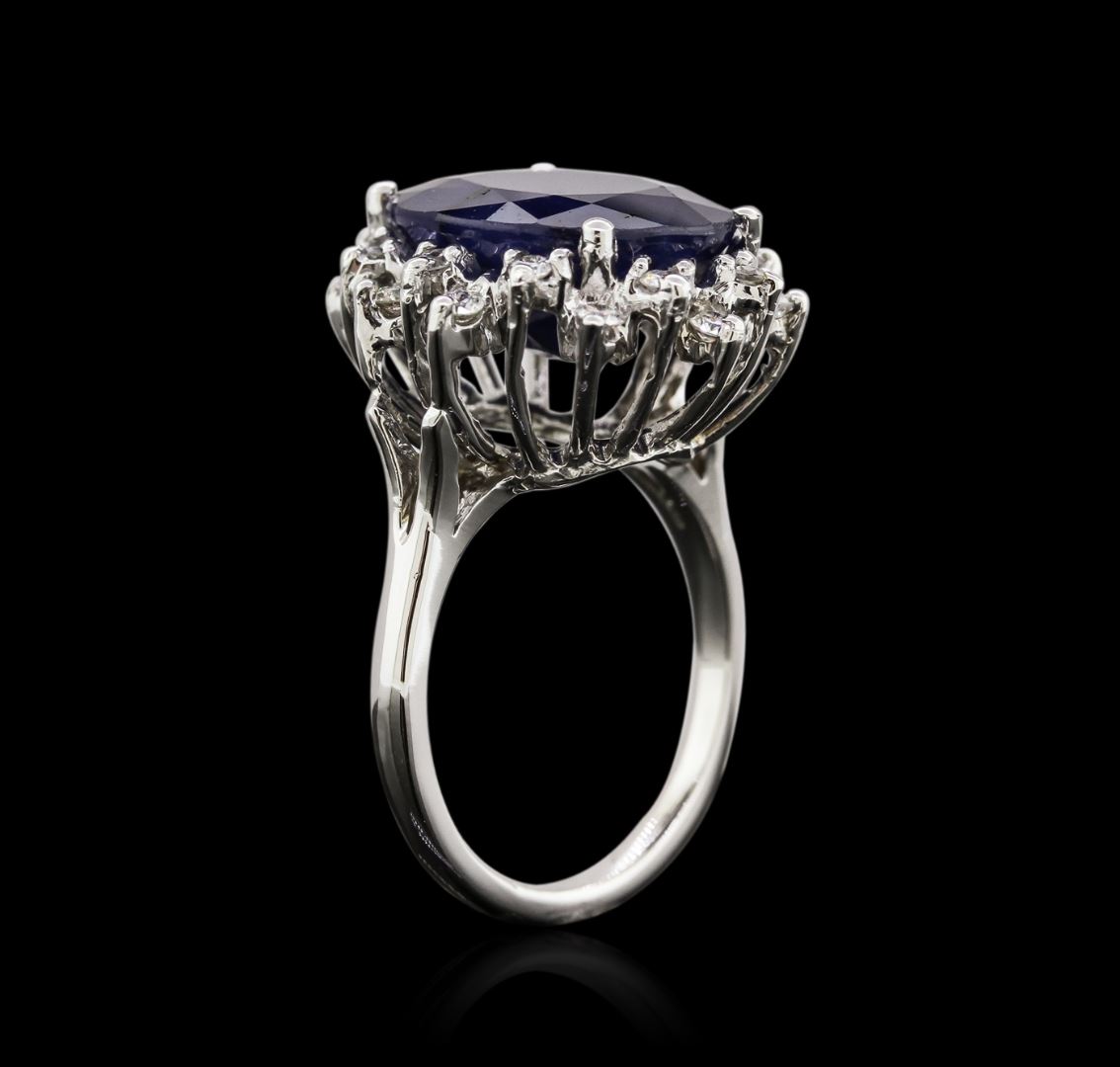 One ring featuring: 14KT white gold weighing 6.37 grams containing one blue sapphire center stone with a total weight of 11.82ct and 20 diamonds with a total weight of 0.52ct.