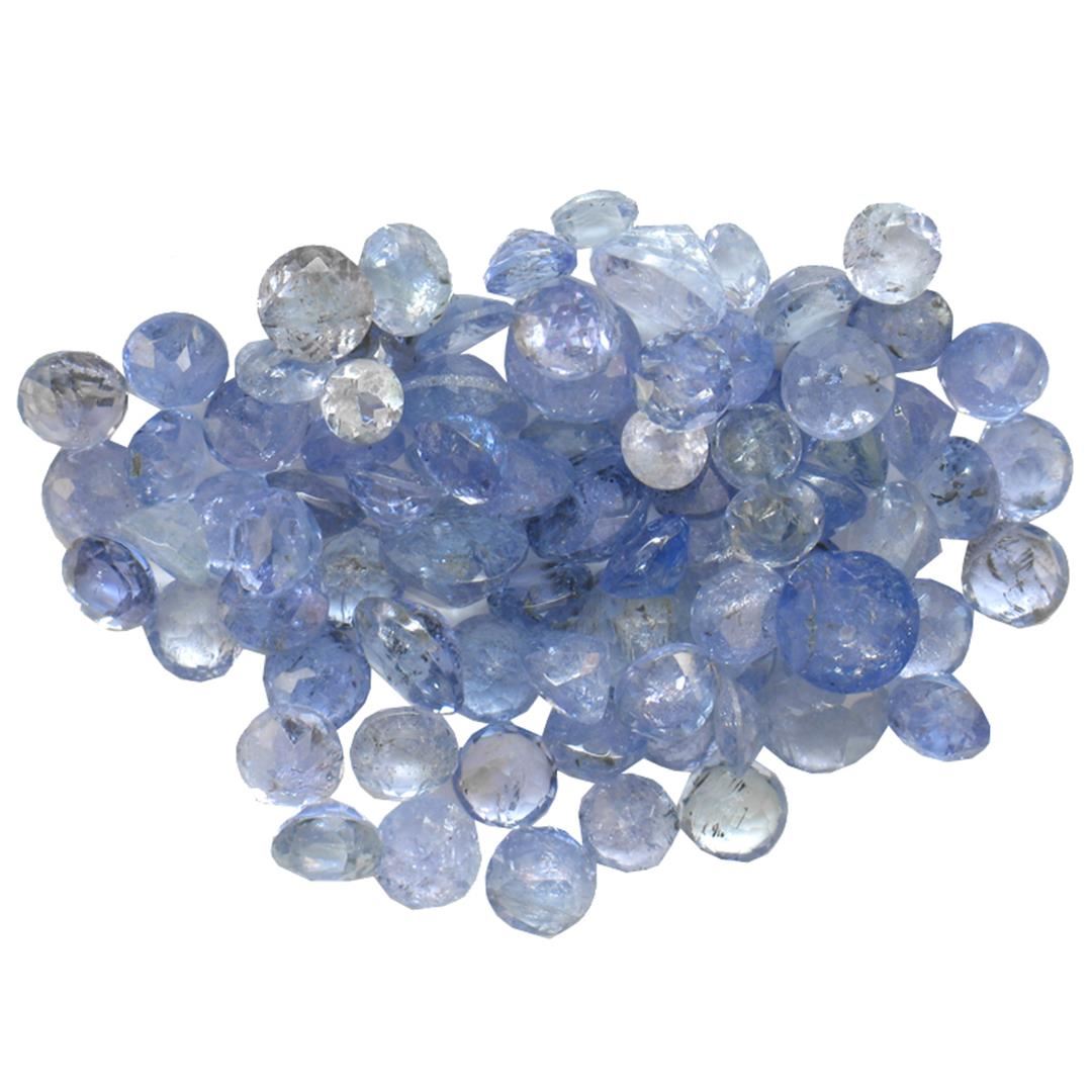 Forty round mixed cut natural tanzanites exact total weight 11.93ct., clarity is slightly included, type I, medium dark, very slightly grayish, violetish blue color, (GIA vB 6/3), cut is good. Measurements & the color grade are an average for the group, Color grade is an average for the group, Naturally occurring internal & external characteristics are present, Indications of laboratory high temperature heat treatment. Westfield Appraised at $1,150.00.