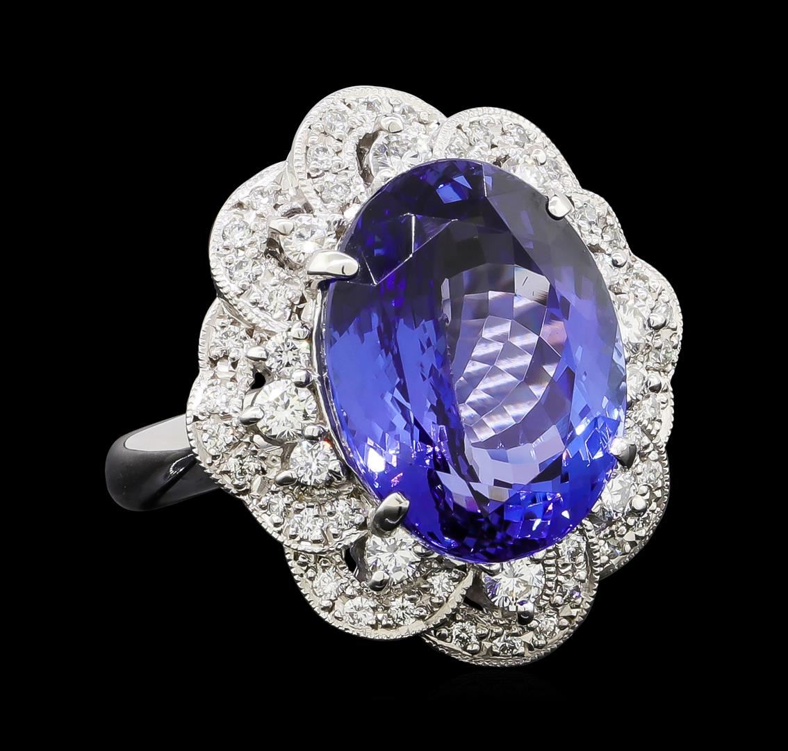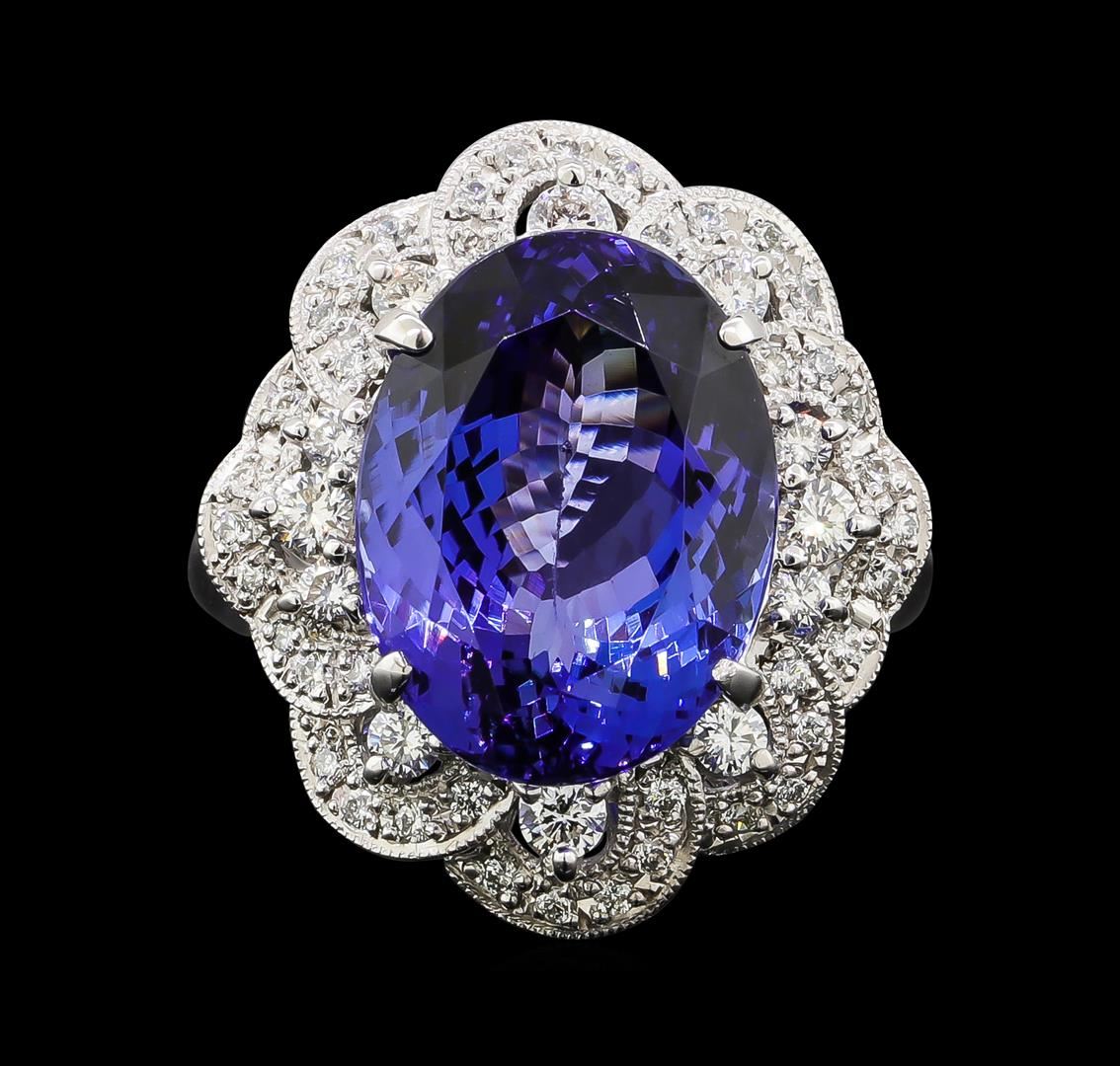 One ring featuring: Platinum containing Tanzanite with a total weight of 11.95ct and Diamonds with a total weight of 0.77ct. Total Weight of Ring: 15.1 grams.