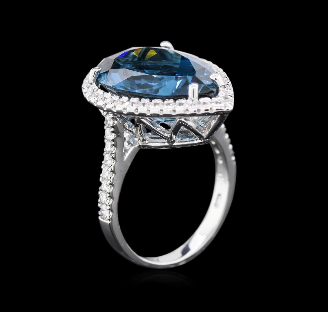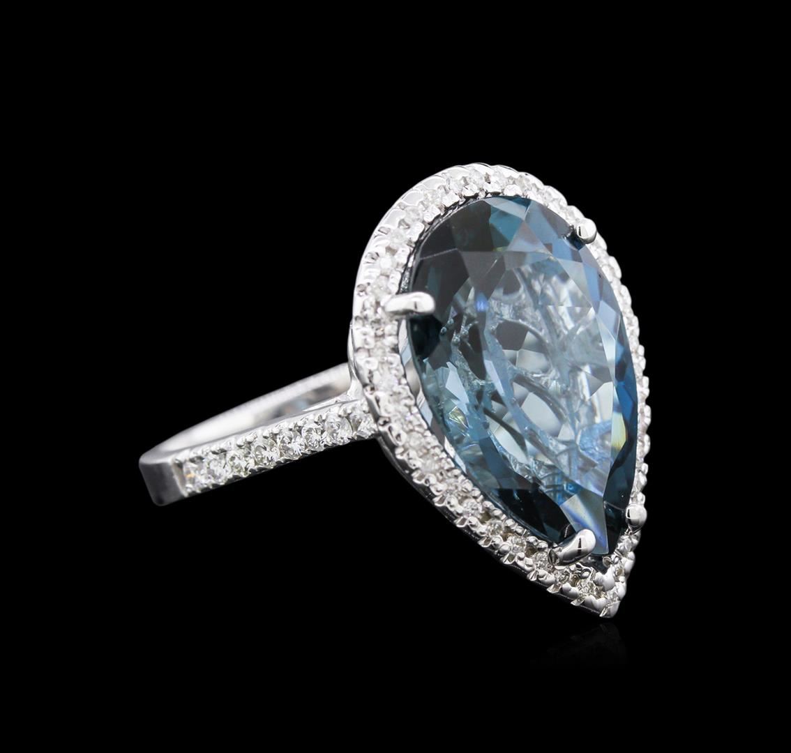 One ring featuring: 14KT white gold weighing 6.30 grams containing one blue topaz center stone with a total weight of 12.06ct and 54 diamonds with a total weight of 0.43ct.