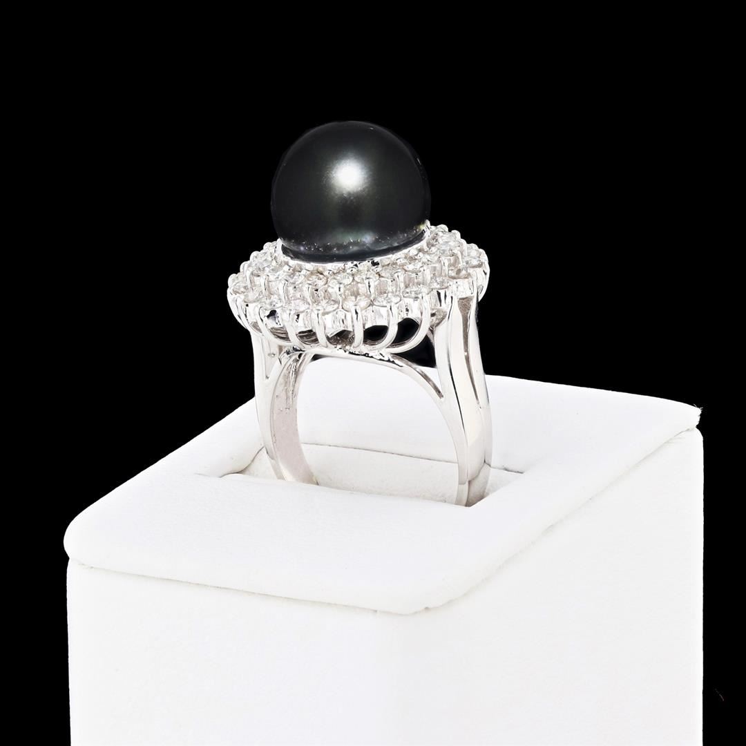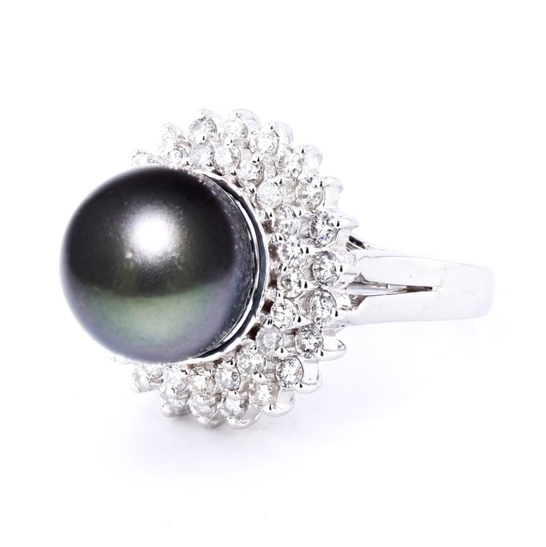 12.0mm Black Pearl and 1.35ctw Diamond 14K White Gold Ring. Please see Photos and Description for all available information. This ring is set with a 12.0mm black pearl and 1.35ctw of diamonds in the center. This item is available in a size 6 1/4.