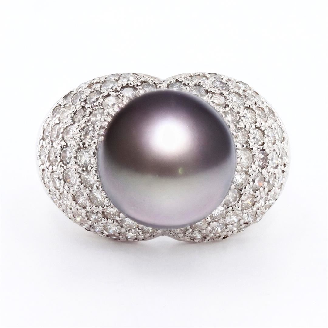 12.0mm Tahitian Cultured Pearl with 1.96ctw Diamond 14K White Gold Ring. Please see Photos and Description for all available information. This ring is made with a 12.0mm Tahitian Cultured Pearl and 1.96ctw of side stone diamonds. The Tahitian Cultured Pearl is known for its unique black lip color and is one of the largest cultured pearls in the world. This ring is available in a size 6 1/4.