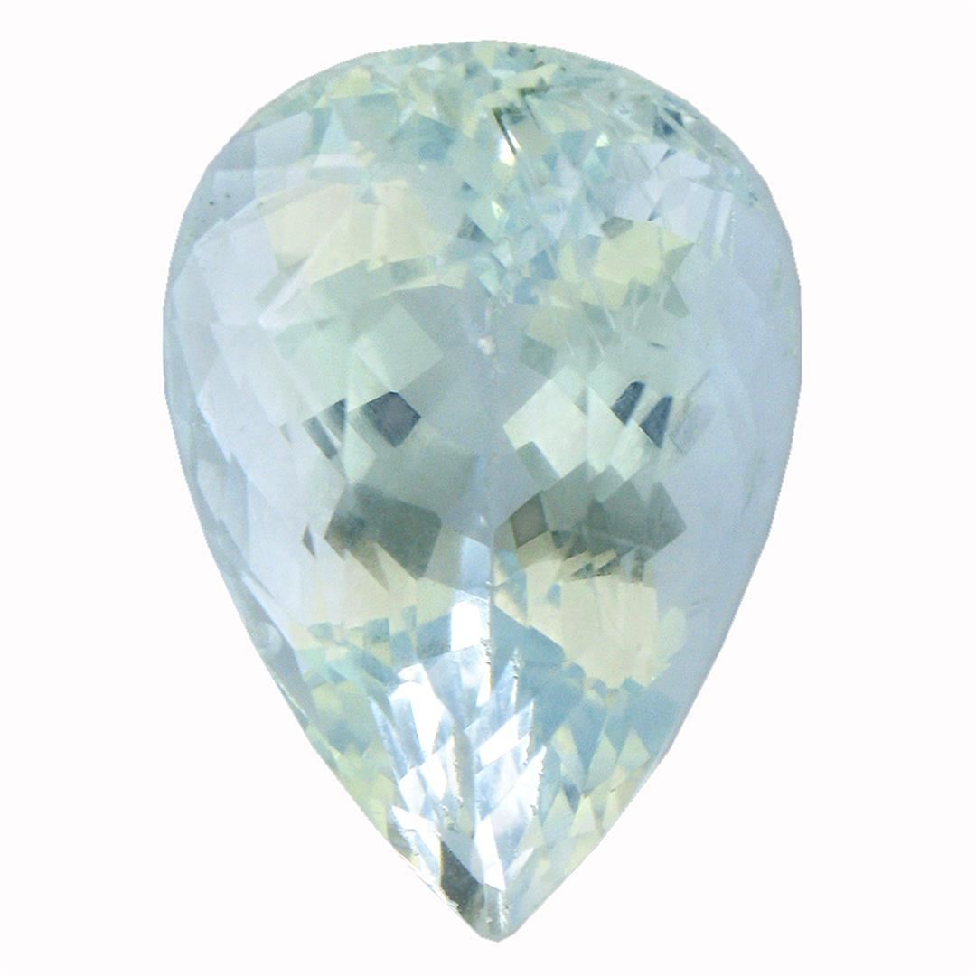 One pear cut natural aquamarine exact weight 12.12ct., clarity is slightly included, type I, medium, very slightly grayish, very slightly greenish blue color, (GIA vslgB 5/3), cut is good. Westfield Appraised at $4,665.00.