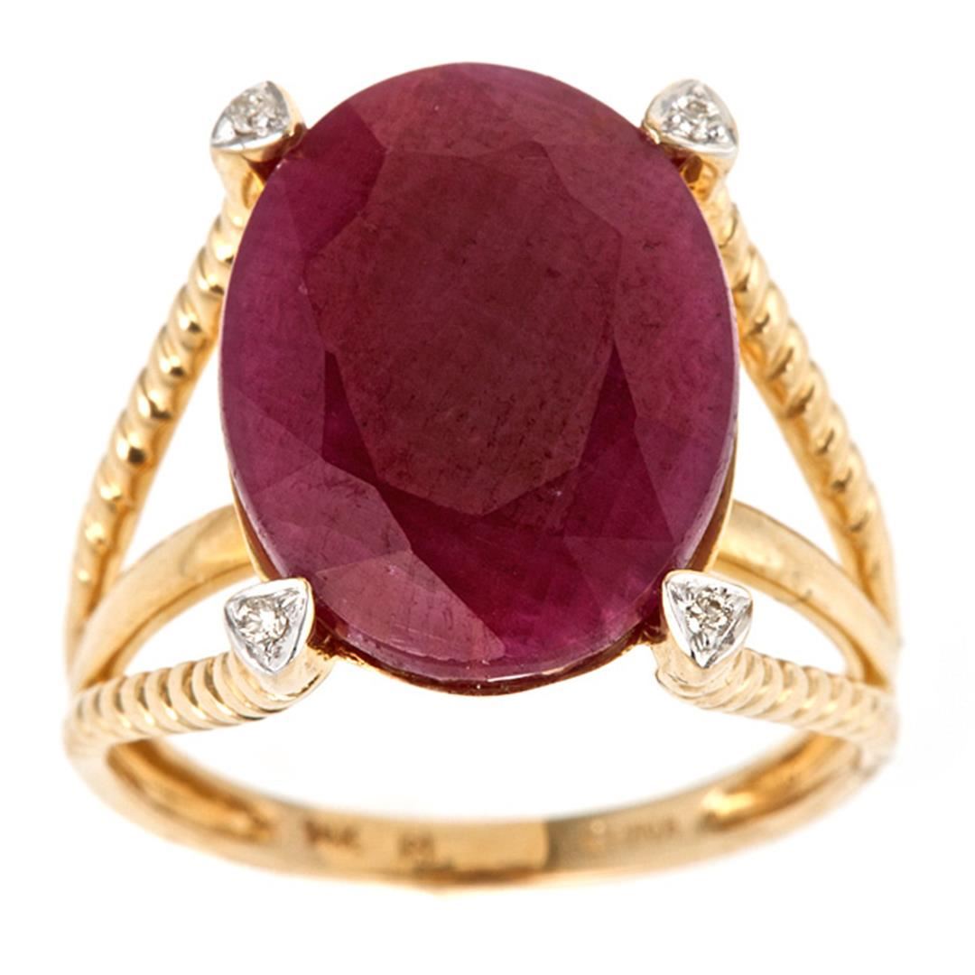 One Ring featuring: 14KT Yellow Gold weighing 2.55 grams containing Ruby with an approximate weight of 12.48ct, Diamond with an approximate weight of 0.03ct, and with an approximate weight of ct.