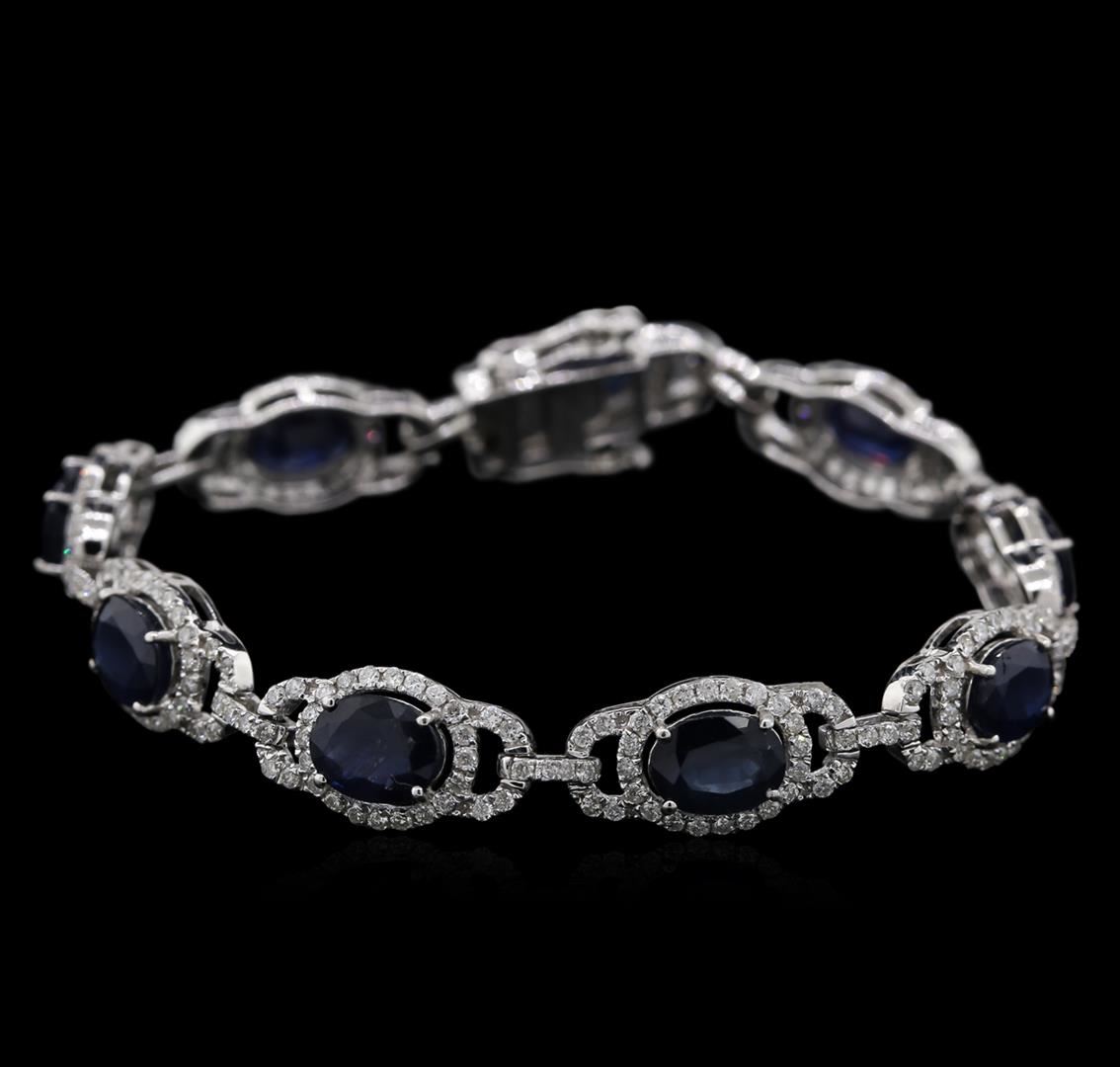 One bracelet featuring: 14KT white gold weighing 13.85 grams containing 9 blue sapphires with a total weight of 12.65 and diamonds with a total weight of 2.65ct.