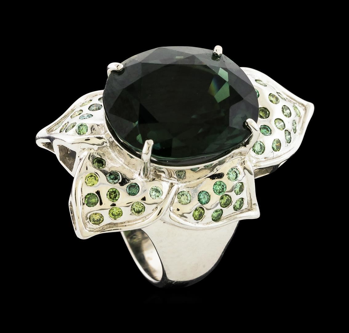 One ring featuring: 18KT White Gold containing Tourmaline with a total weight of 12.97ct and Diamonds with a total weight of 0.78ct. Total Weight of Ring: 15.4 grams.