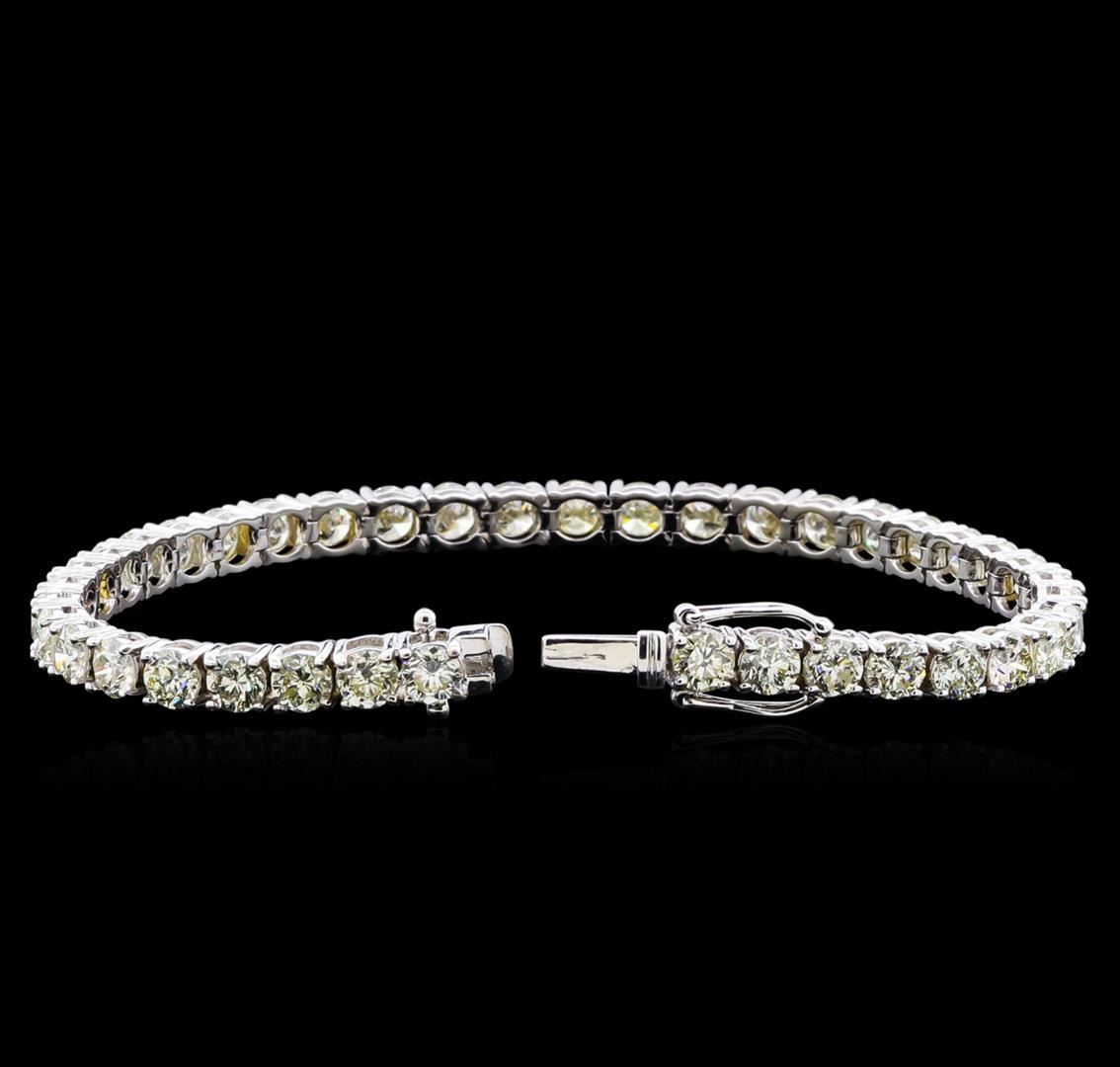 One 18KT white gold 13.00ctw diamond tennis bracelet. Metal: 18KT solid white gold. Face Measurements: 4.5 x 180mm. Size: 7. Finish: Bright polish. Total item weight: 15.50 grams. Markings: Stamped 18K. Country Made: USA. Main Stone: Diamond. Quantity: 40. Shape: Round. Color: White. Carat Total Weight: 13.00ct. Measurements: 4.2 - 4.3mm. Treatment: None. Setting: Prong. Color Grade: H - I. Clarity: SI2 - I1. Cut: Very good. Condition: Excellent workmanship. Gemstones graded in the mounting. BHGL Appraised at $53,800.00.