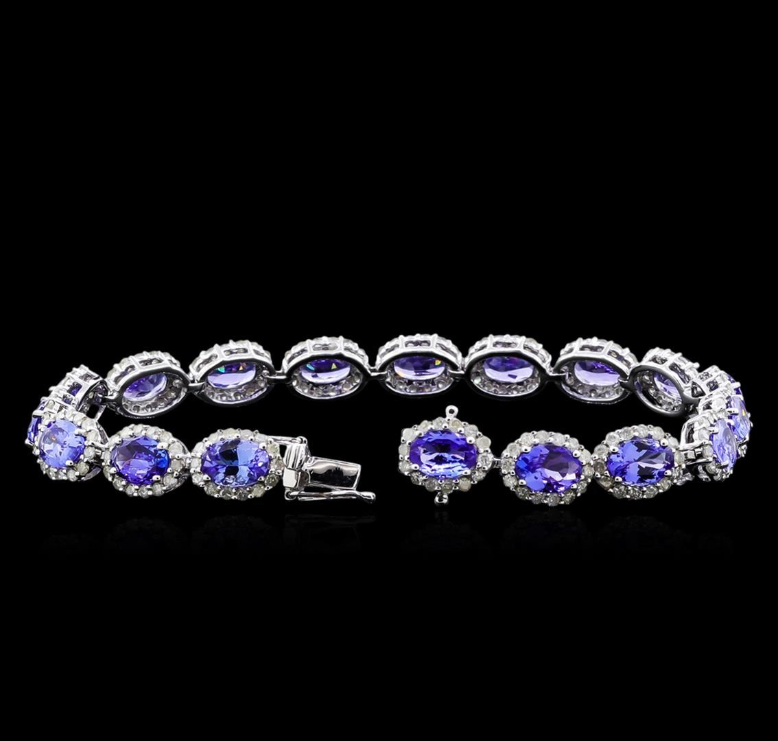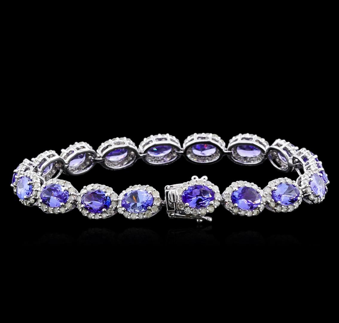 One 14KT white gold ladies Michael Christoff bracelet weighing a total of 14.00 grams. Containing: 18 Natural Tanzanites: Weight: Total 13.00ct. Measurements: 6.90 x 4.90 x 3.00mm. Shape & Cutting: Oval-shaped, mixed-cut. Color: Medium purple-blue, very even color. Cut & Polish: Very good. Transparency: Transparent. The tanzanites are complemented by 252 round, brilliant-cut diamonds with a total weight of 3.57ct. Clarity Grade: I1. Color Grade: H. GLS Appraised at $12,480.00.