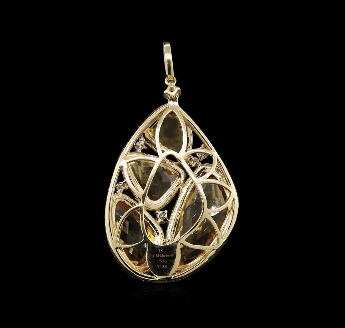 One pendant featuring: 14KT yellow gold weighing 6.00 grams containing 4 citrines with a total weight of 13.38ct and diamonds with a total weight of 1.36ct.