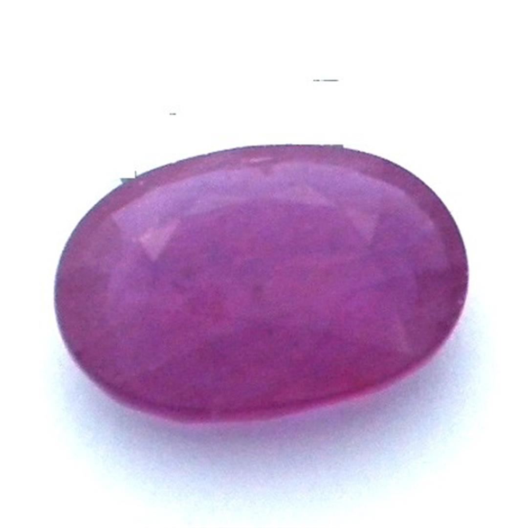 One oval mixed cut natural ruby, measuring 17.50 x 13.50 x 5.00mm, exact weight 13.95ct., clarity is heavily included, type II, medium dark, very slightly brownish, slightly purplish red color, (GIA slpR 6/3), cut is good. Transmitting light somewhat diffusely, transparent to translucent. Naturally occurring internal & external characteristics are present. Indications of laboratory high temperature heat treatment, with glass & flux additives. Ruby has a low tolerance to rhodium plating, repolishing the surface, & ultrasonic cleaning. Westfield Appraised at $1,880.00.