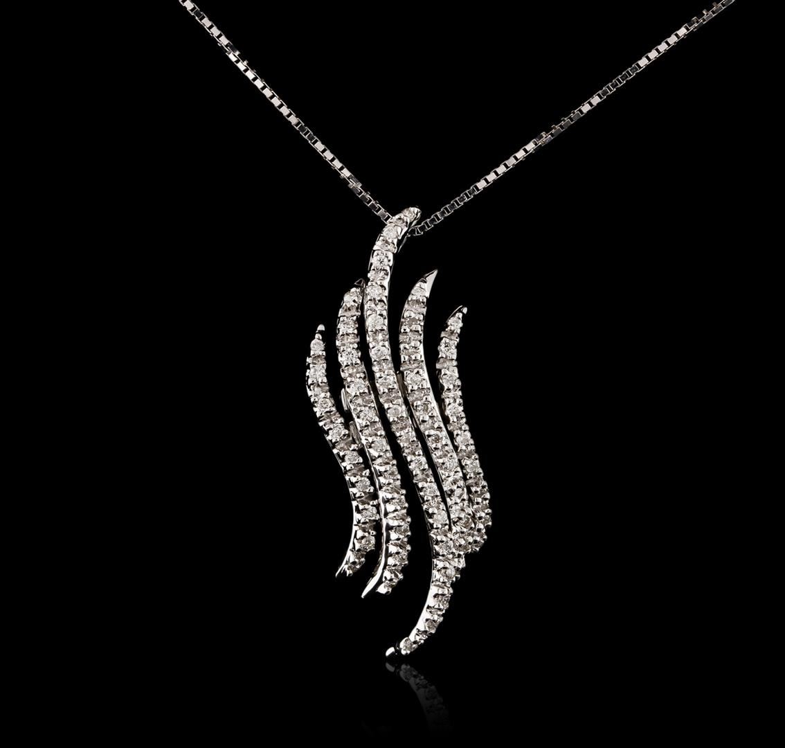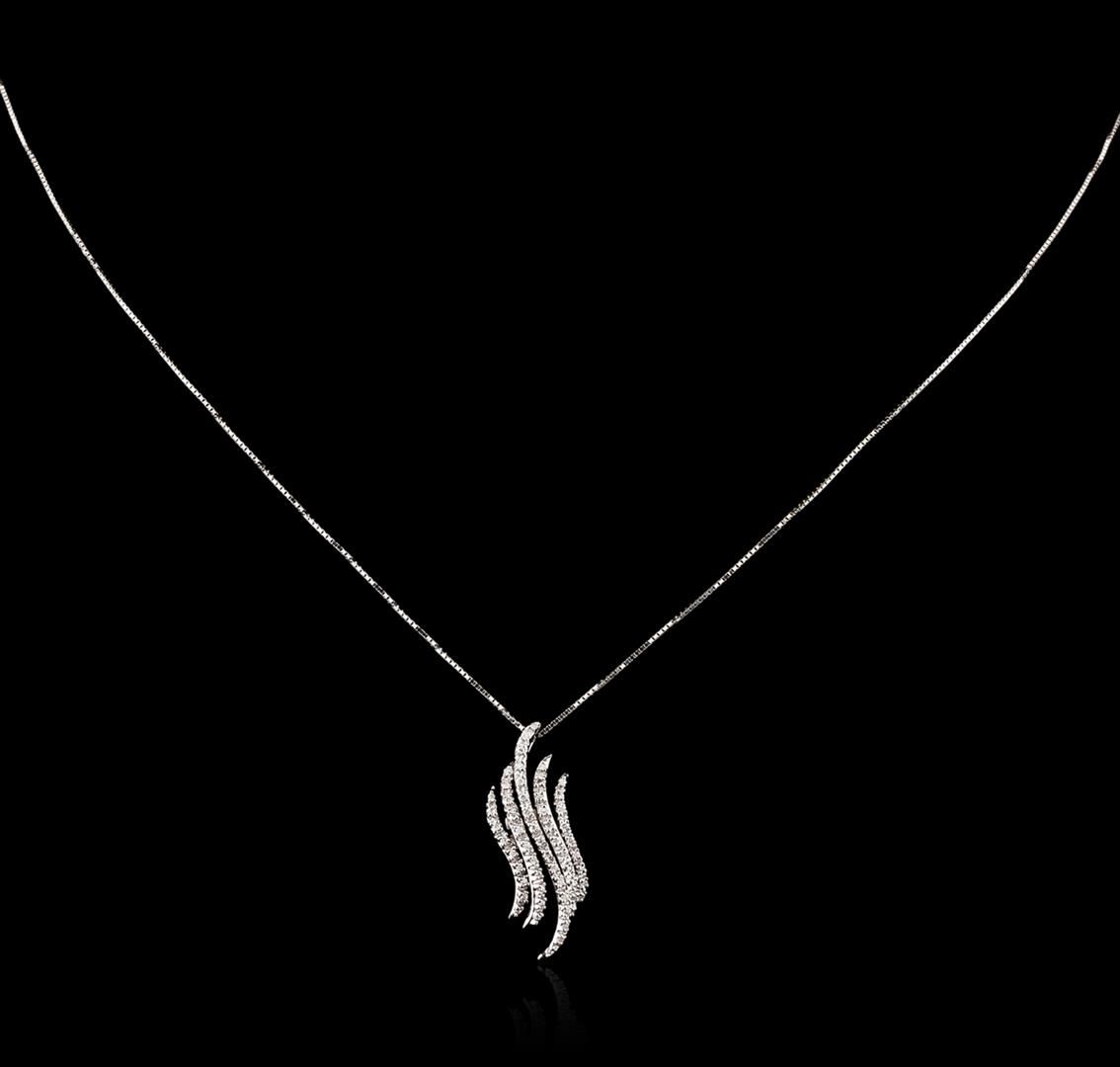 One pendant with chain featuring: 18KT white gold pendant with 14KT white gold chain weighing 3.80 grams containing diamonds with a total weight of 0.15ct.