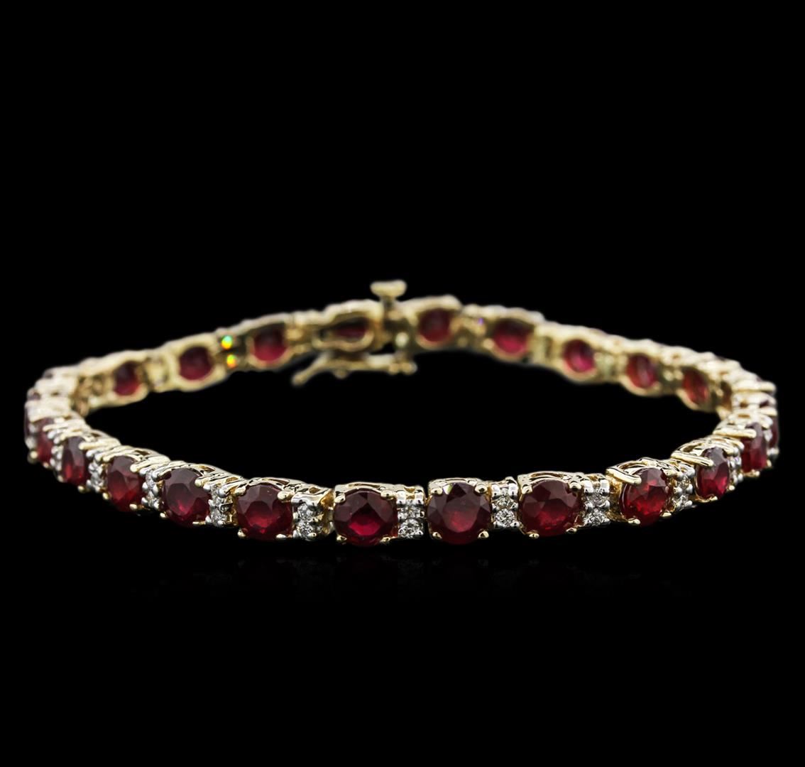One bracelet featuring: 14KT yellow gold weighing 14.92 grams containing 24 rubies with a total weight of 14.70ct and diamonds with a total weight of 0.73ct.
