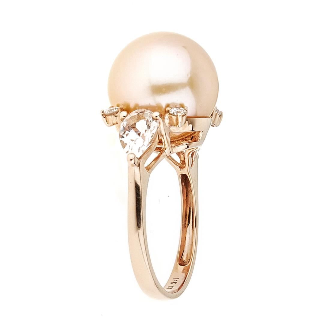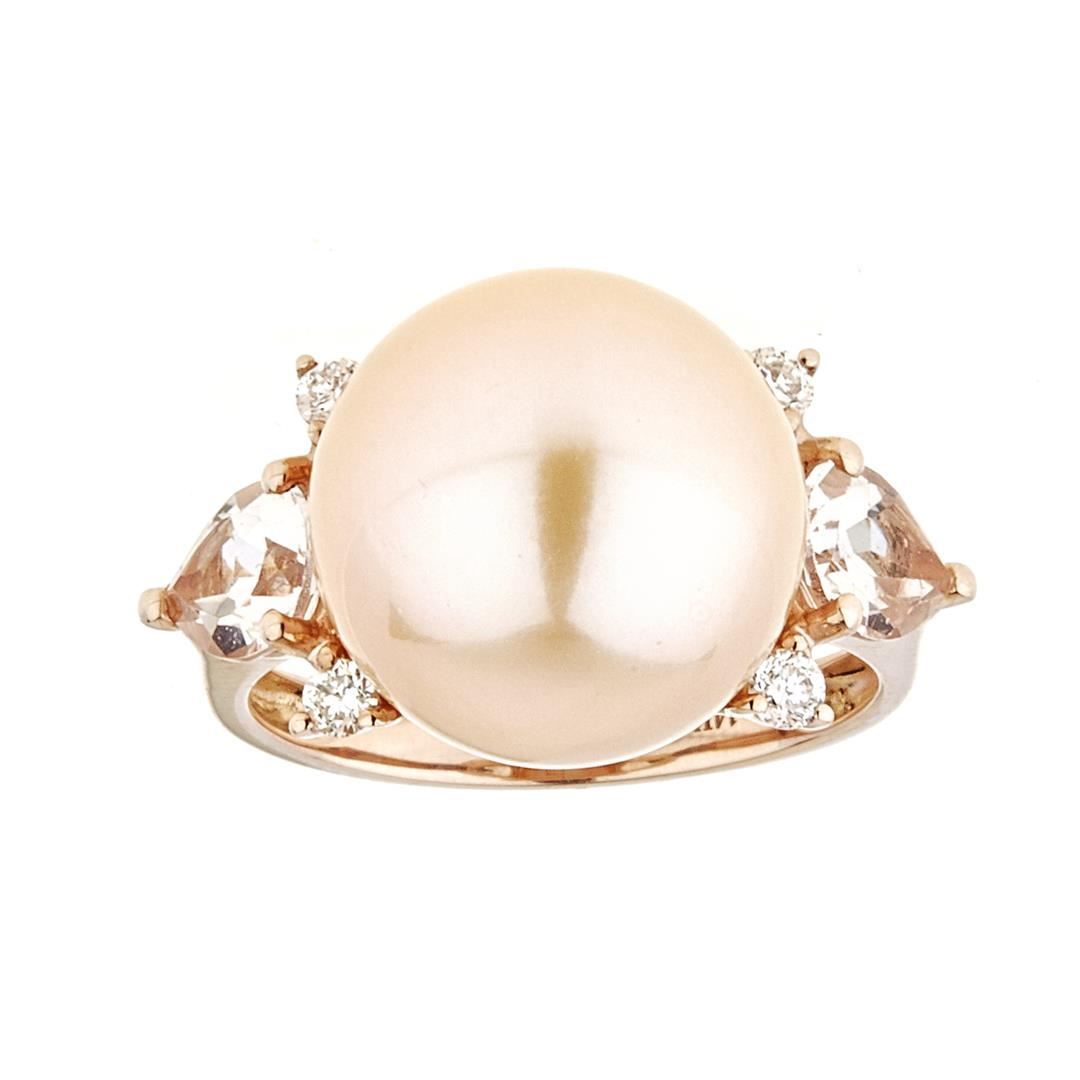 One Pearl, Tanzanite, and Diamond Ring featuring: 14K White Gold with a total weight of 3.52 grams, One Pearl with a total weight of 14.90ct, 2 Tanzanite Stones with a total weight of 1.19ctw, and 4 Round Cut Diamonds with a total weight of 0.14ctw.