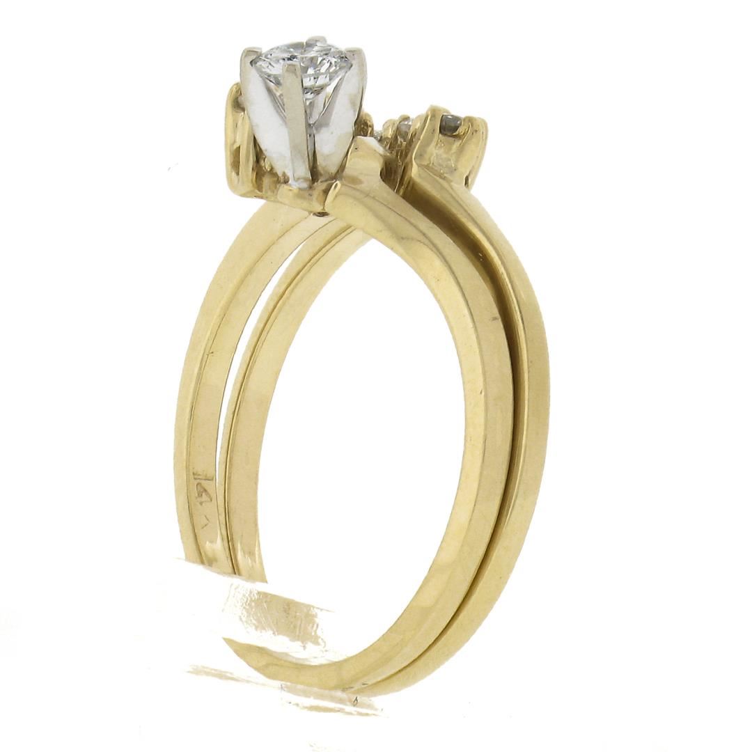 A solid 14k yellow gold ring & band set, with 8 round cut natural diamonds (G/H- SI1/SI2 ; 0.40ctw). The ring is size 6.0, weighs a total of 3.18 grams, and measures 9.7mm wide.