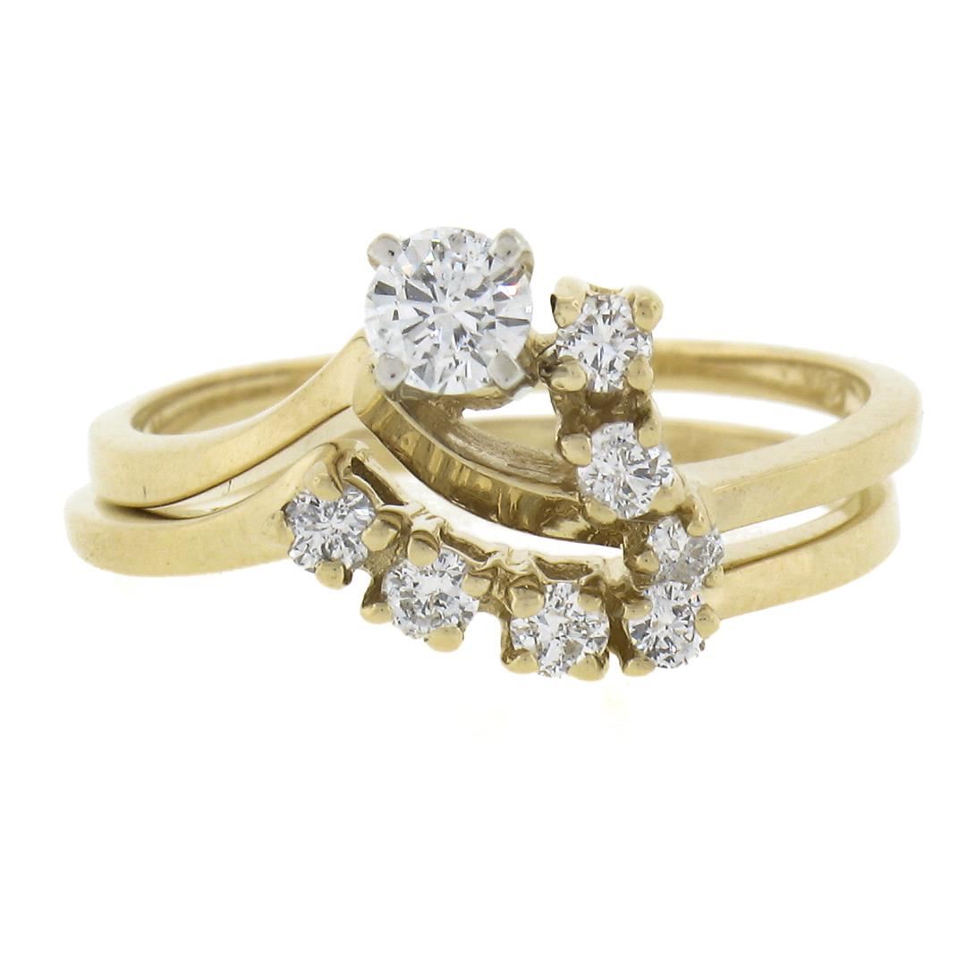 A solid 14k yellow gold ring & band set, with 8 round cut natural diamonds (G/H- SI1/SI2 ; 0.40ctw). The ring is size 6.0, weighs a total of 3.18 grams, and measures 9.7mm wide.