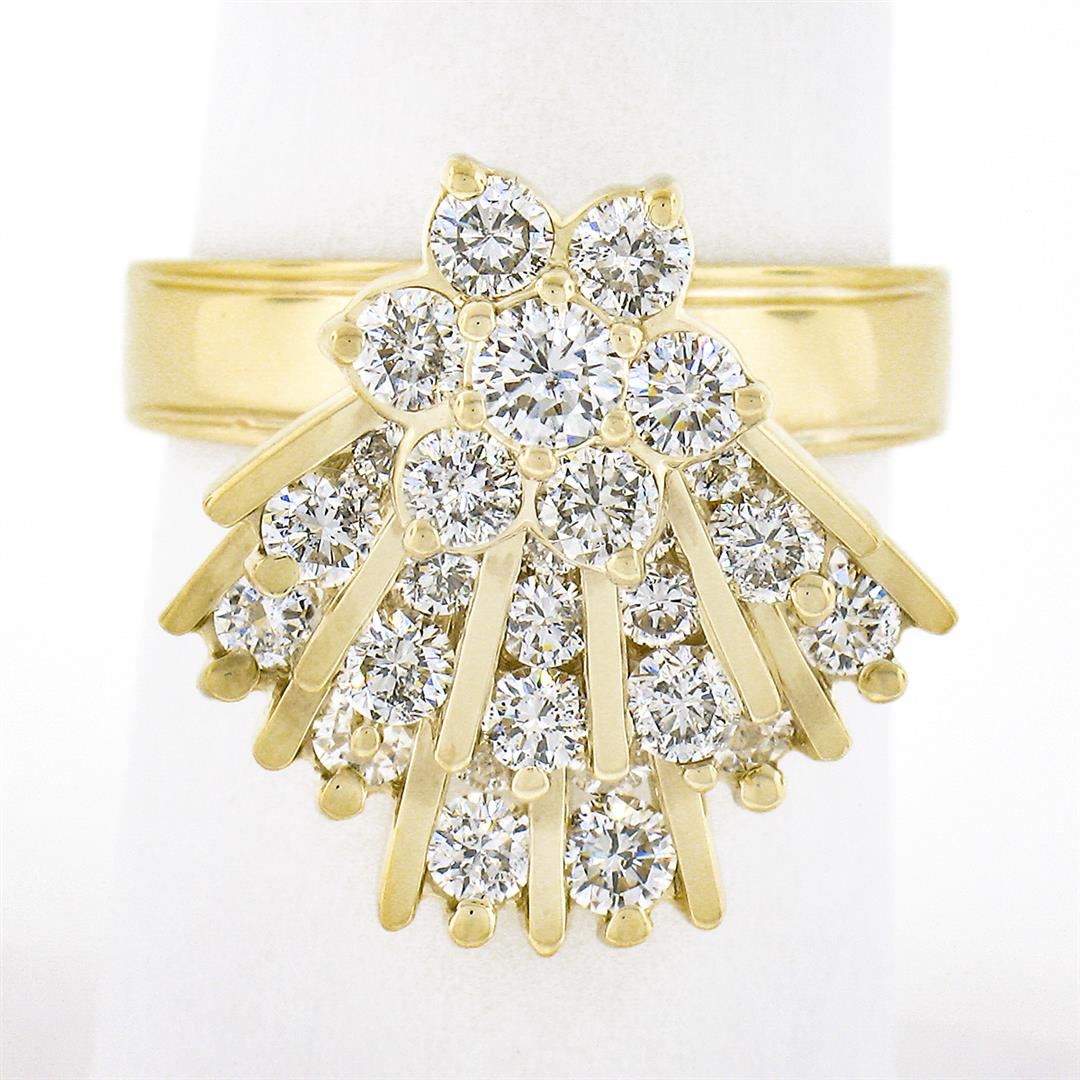 14K Gold 2.30 ctw Diamond Cluster w/ Mechanical Spinning Fan Unique Cocktail Rin