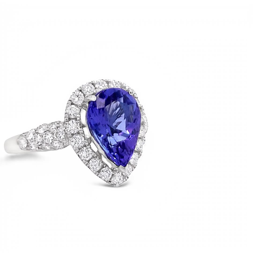 14K Pear Shaped Tanzanite Ring 2.66ct. Please see Photos and Description for all available information. This beautiful 14K white gold ring features a 2.66ct pear shaped tanzanite center stone. This stone is the ideal shade of purple, with a rich tone and a vibrant hue. It's an excellent choice for those who want a unique alternative to traditional diamond engagement rings.