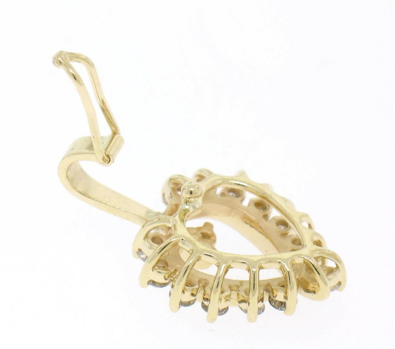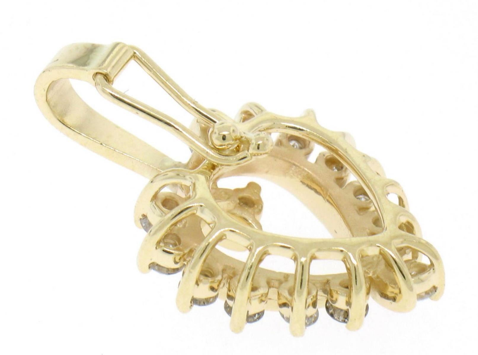 One 14K Solid Yellow Gold 1.0 CTW 16 Round Diamond Offset Heart Enhancer Pendant . Item Details : Material: 14K Solid Yellow Gold , Weight: 3.80 Grams , Stone: (16) Natural Genuine Round Brilliant Cut White Diamonds - 1.00 ctw - Clarity: SI1 - Color: G/H, Dimensions/Size: Pendant measures 15.22 mm Side to Side X 17.69 mm Top to Bottom (26.55 mm Top to Bottom if you include the long enhancer bale) , Chain: This pendant does not come with a chain. However, for a small additional charge we can provide a matching 14K Solid Yellow Gold cable link chain in either 16" or 18". If that is of interest to you please message us and we will adjust the pricing to include the matching chain in the length of your choice. , Condition: Like New
