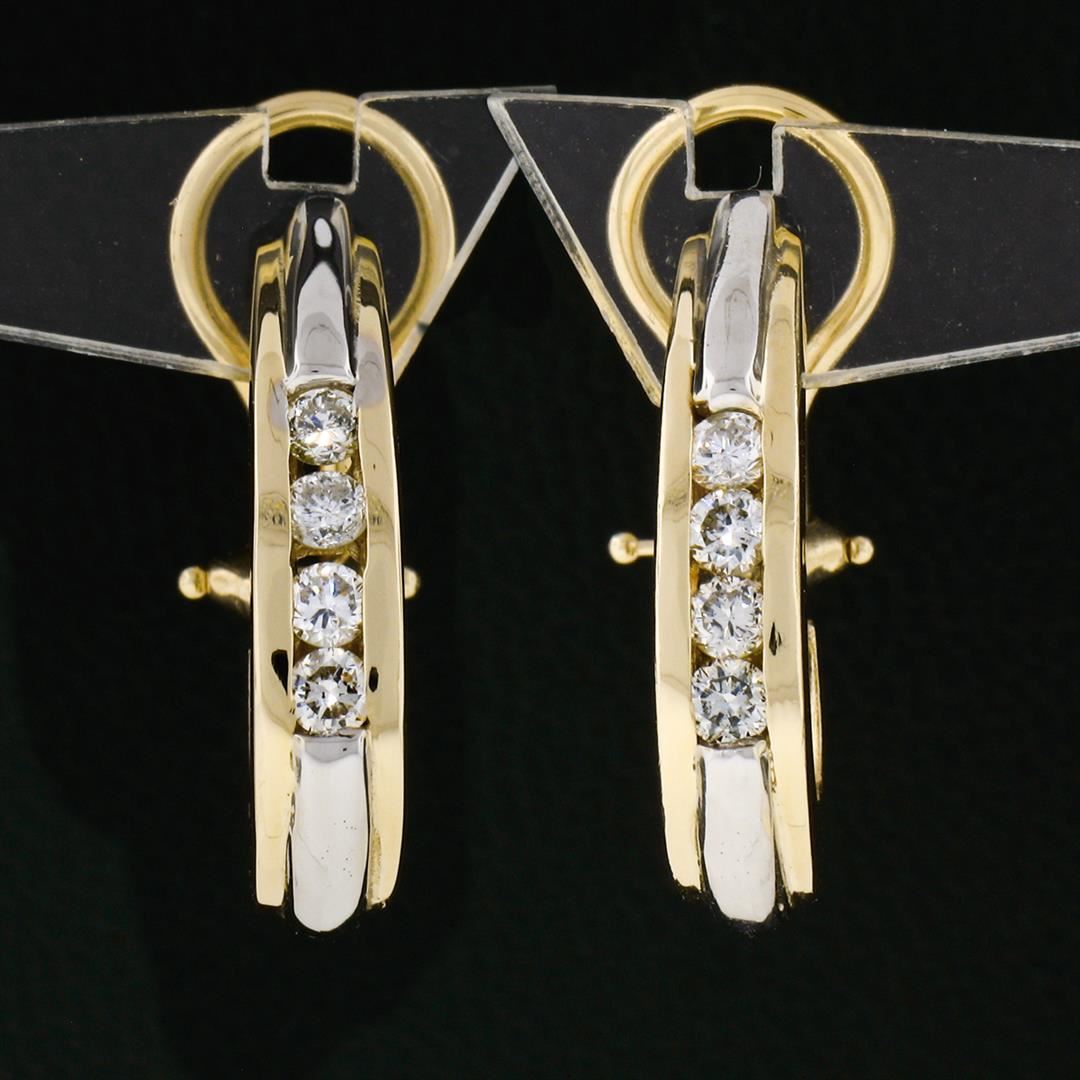 An estate solid 14k yellow and white gold huggie cuff earrings, with 8 round brilliant cut natural diamonds (G/H - VS2/SI1 ; 0.40ctw). The earrings measure approximately 11.10x2.20mm and weigh a total of 9.60 grams.