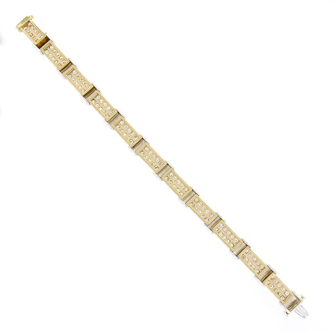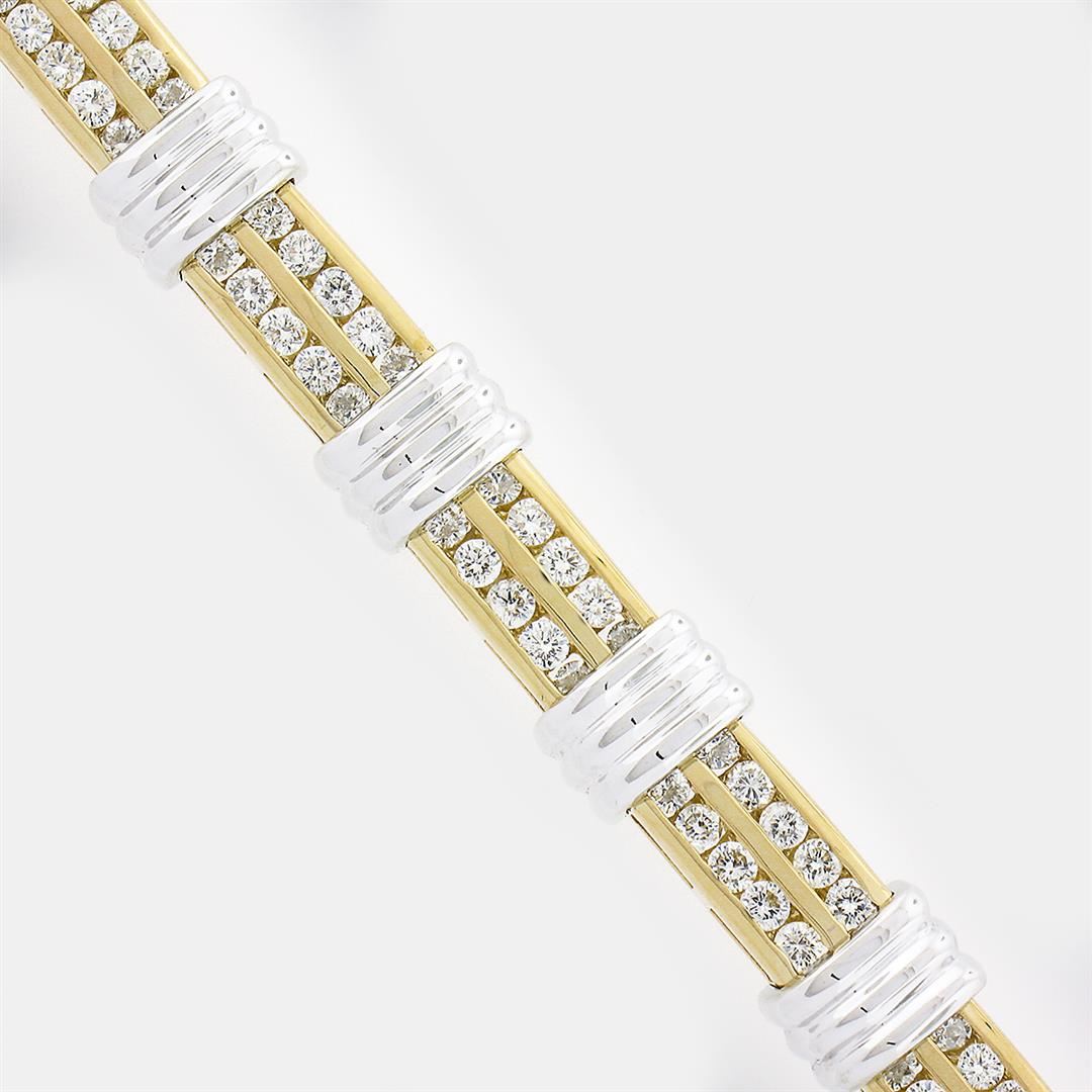 14K TT Gold 3.50 ctw Round Dual Channel Set Diamond & Grooved Link Tennis Bracel