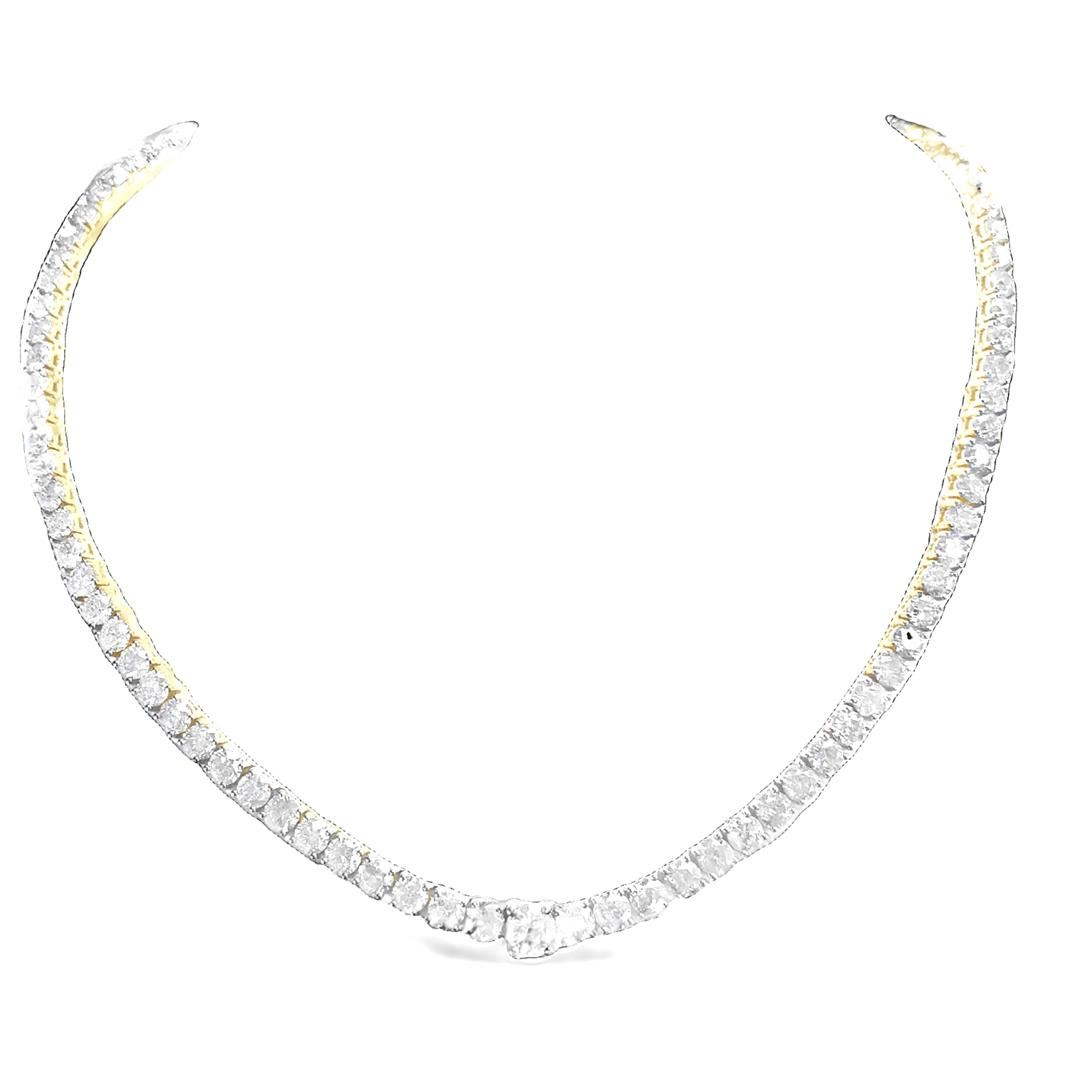 14K Tennis Necklace 16.45cts of Diamonds. Please see Photos and Description for all available information. This is a necklace of diamonds set in a 14K yellow gold chain. It is 20 inches long and weighs 19.45 grams. It has a total of 16.45cts of diamonds.