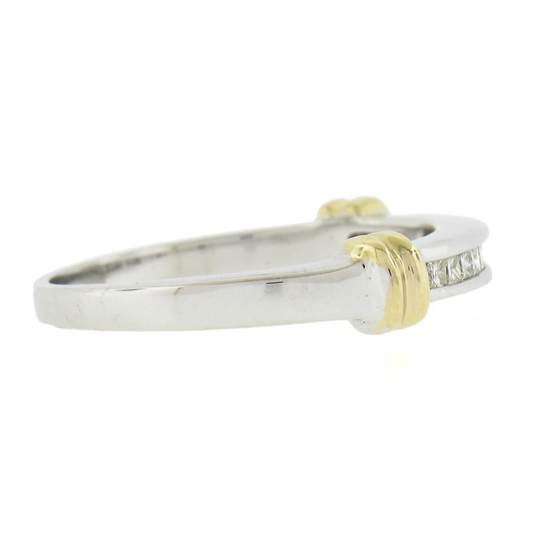 A solid 14k yellow & white gold band ring, with 14 princess cut natural diamonds (H/I - VS1-SI1 ; 0.25ctw). The ring is size 7.0, weighs a total of 3.16 grams, and measures 2.9mm wide.