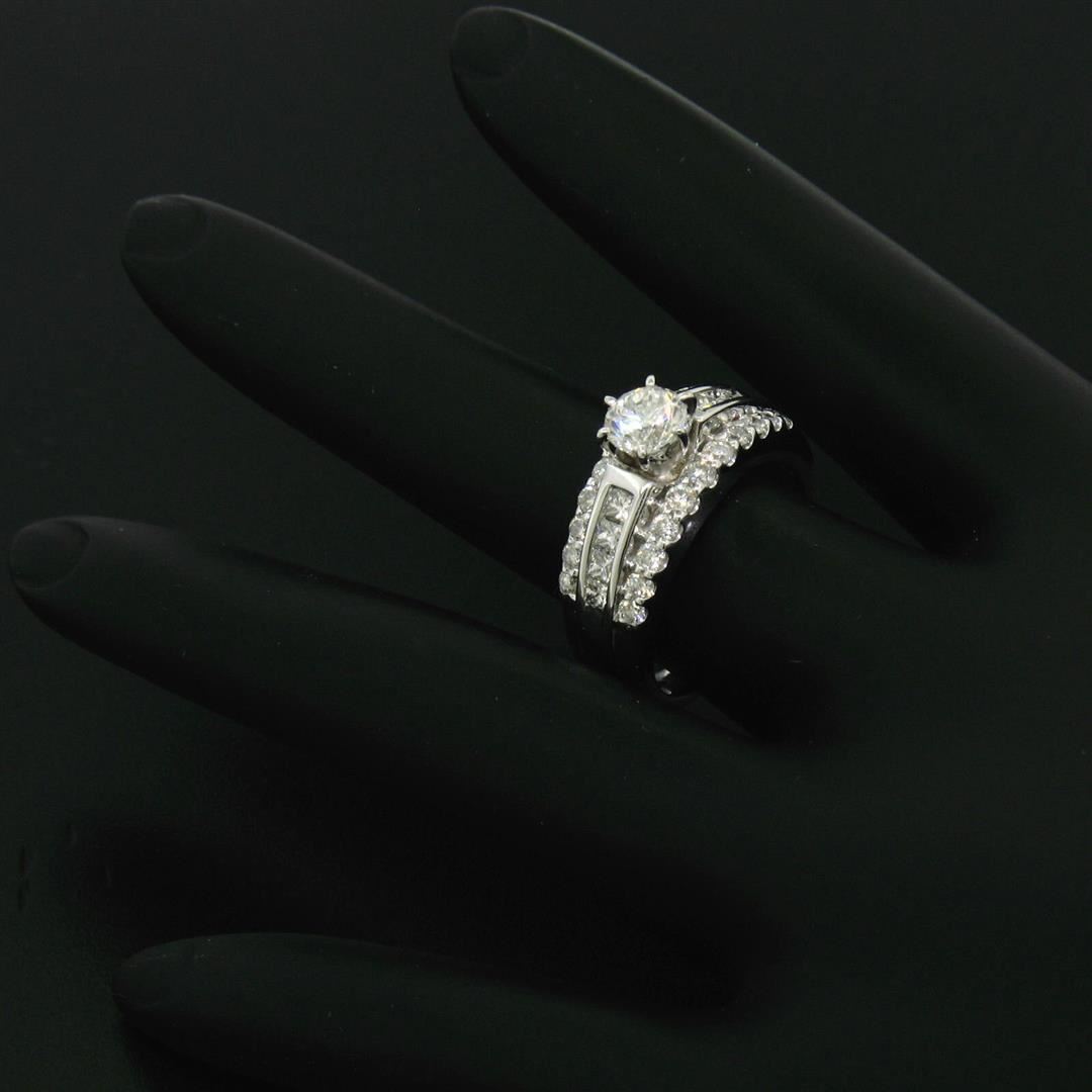 14K White Gold 1.39 ctw Prong Round & Channel Princess Diamond Engagement Ring