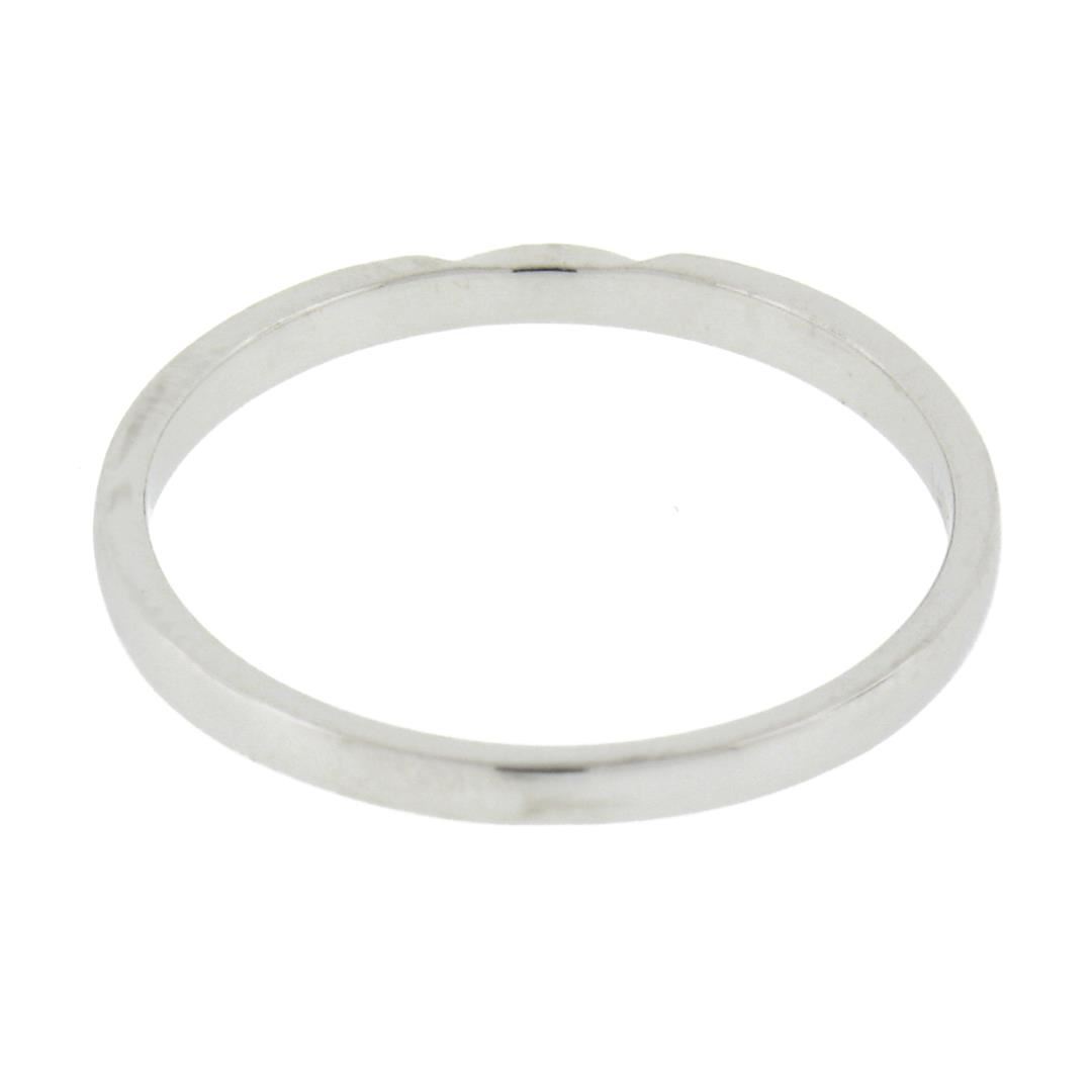A solid 14k white gold band ring. The ring is size 6.5, weighs a total of 1.35 grams, and measures 1.9mm wide.