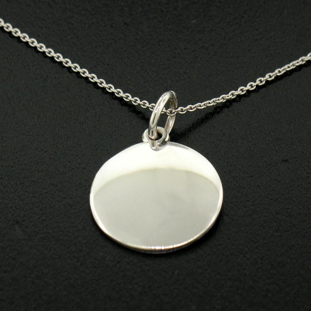 A new solid 14k white gold pendant necklace, with 25 round brilliant cut natural diamonds (G/H- VS2/SI1; 0.18ctw). 16 inch cable link chain, 3.8 grams total weight, pendant measures 21x14.8mm.